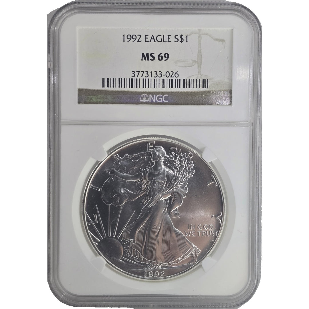 1992 American Silver Eagle, 1 Oz Fine .999 Silver USA Uncirculated $1 NGC MS69