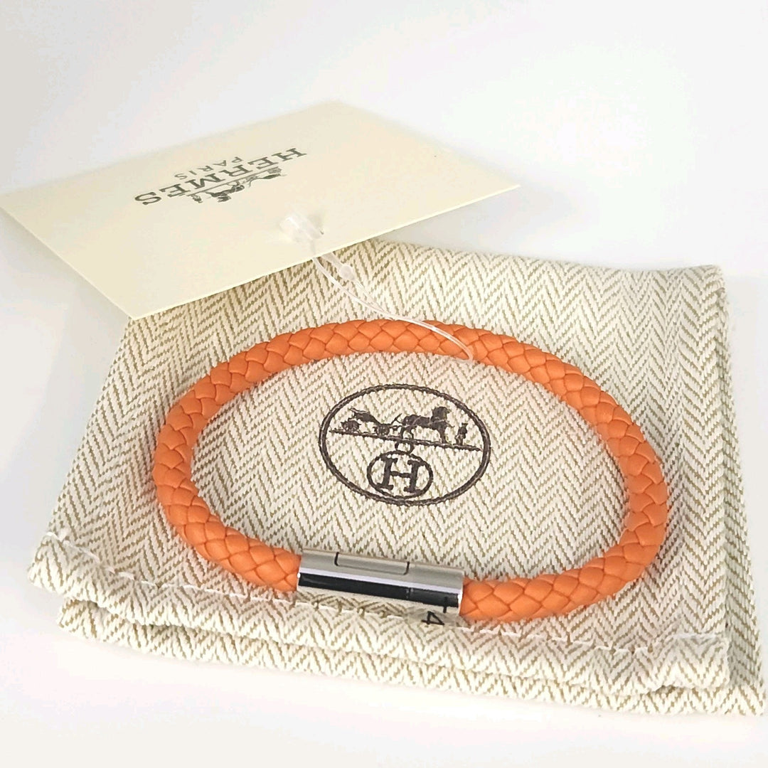 New Hermes Goliath Bracelet Calfskin Palladium Finish Orange Color Size T4