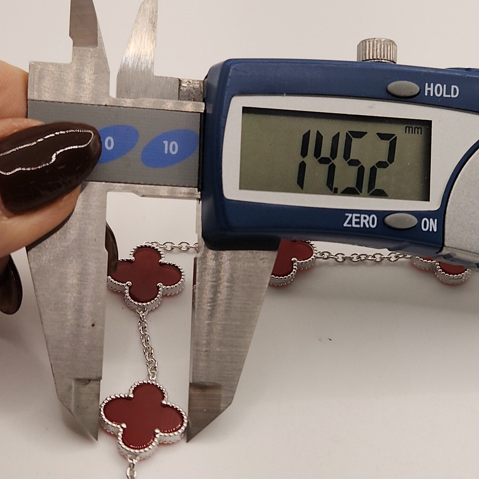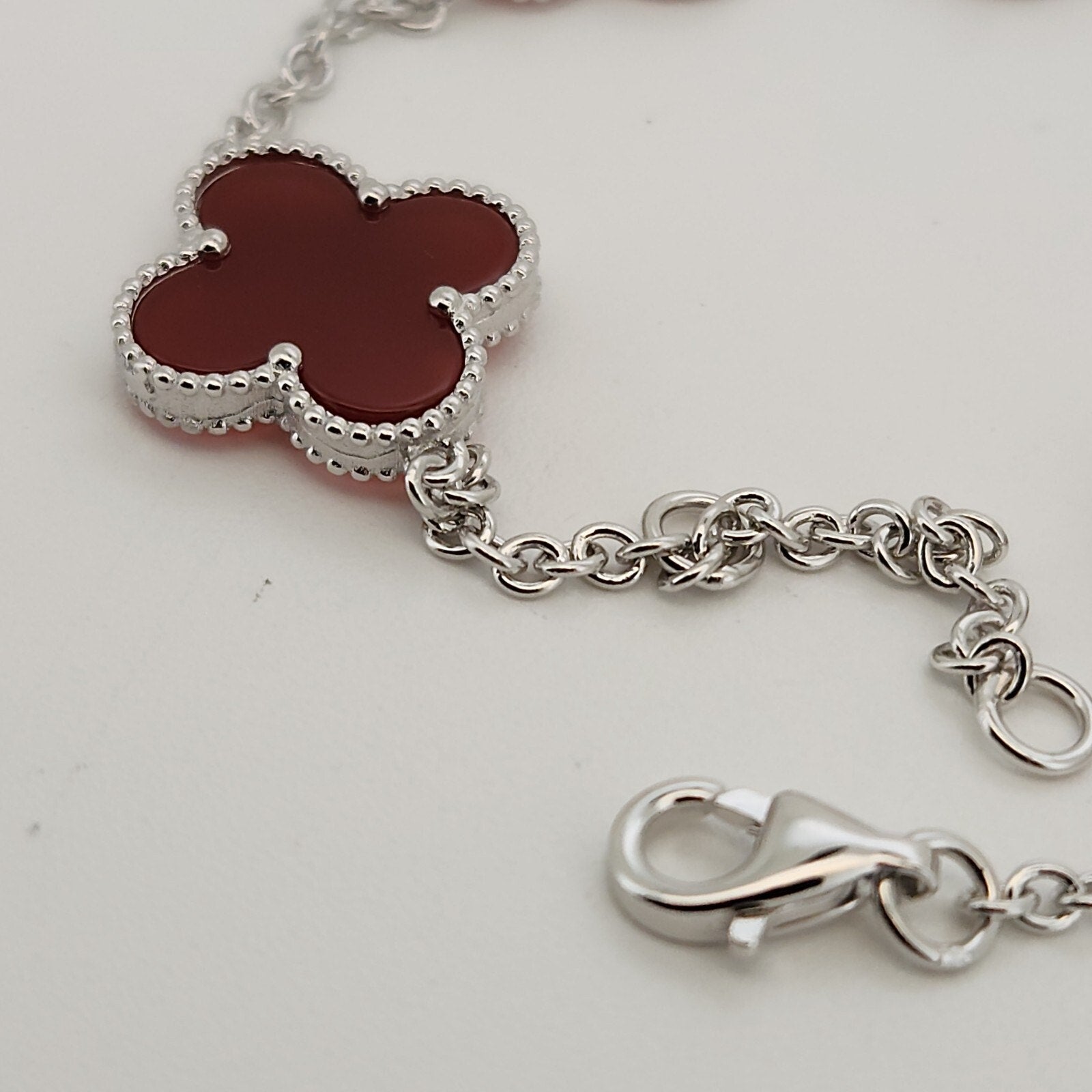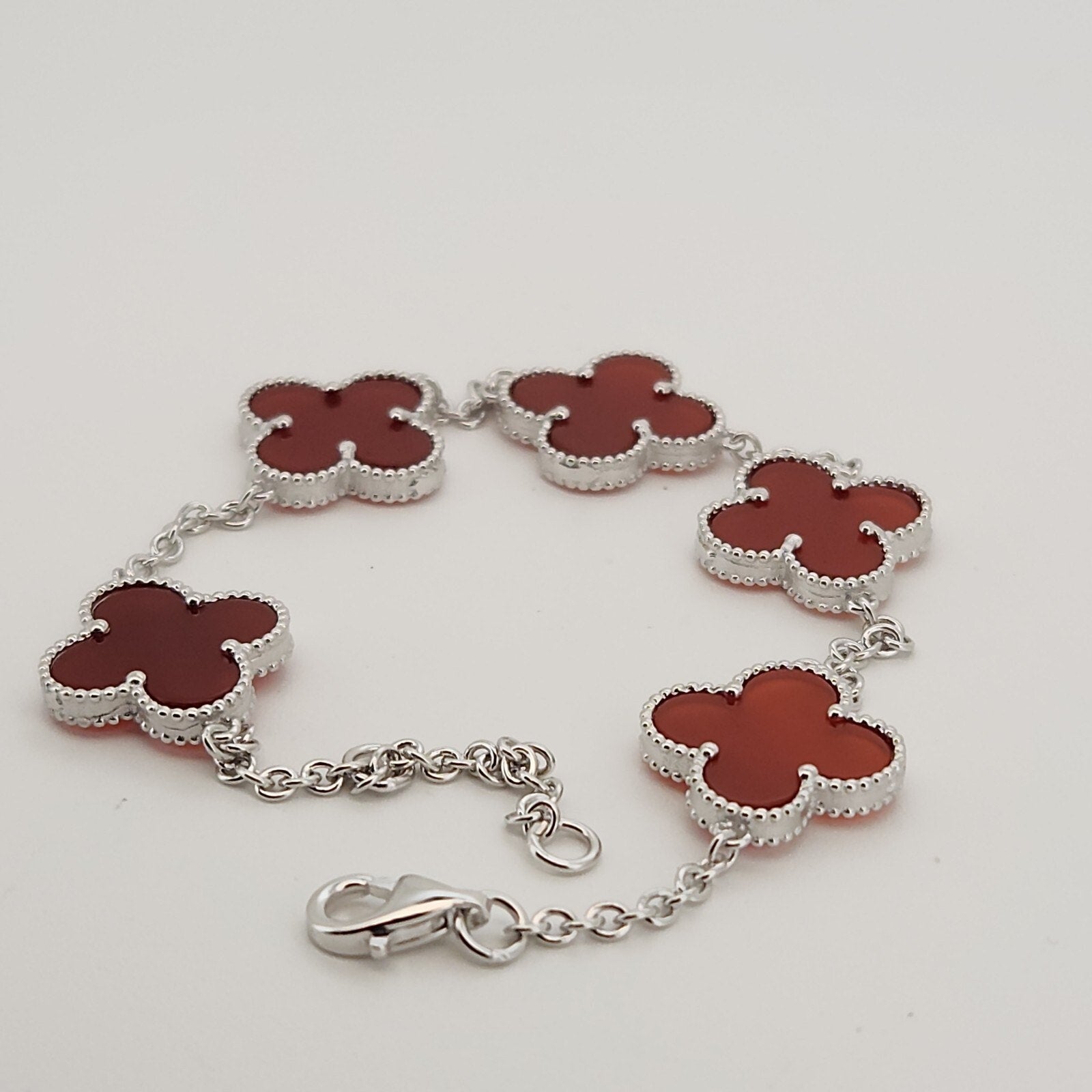 925 Sterling Silver Red Flowers Bracelet 8.2"