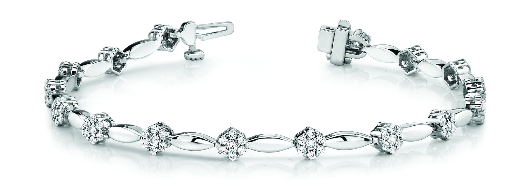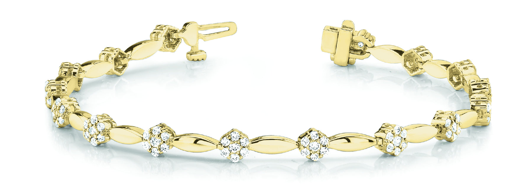 14K Yellow Gold Diamond Cluster Link Bracelet