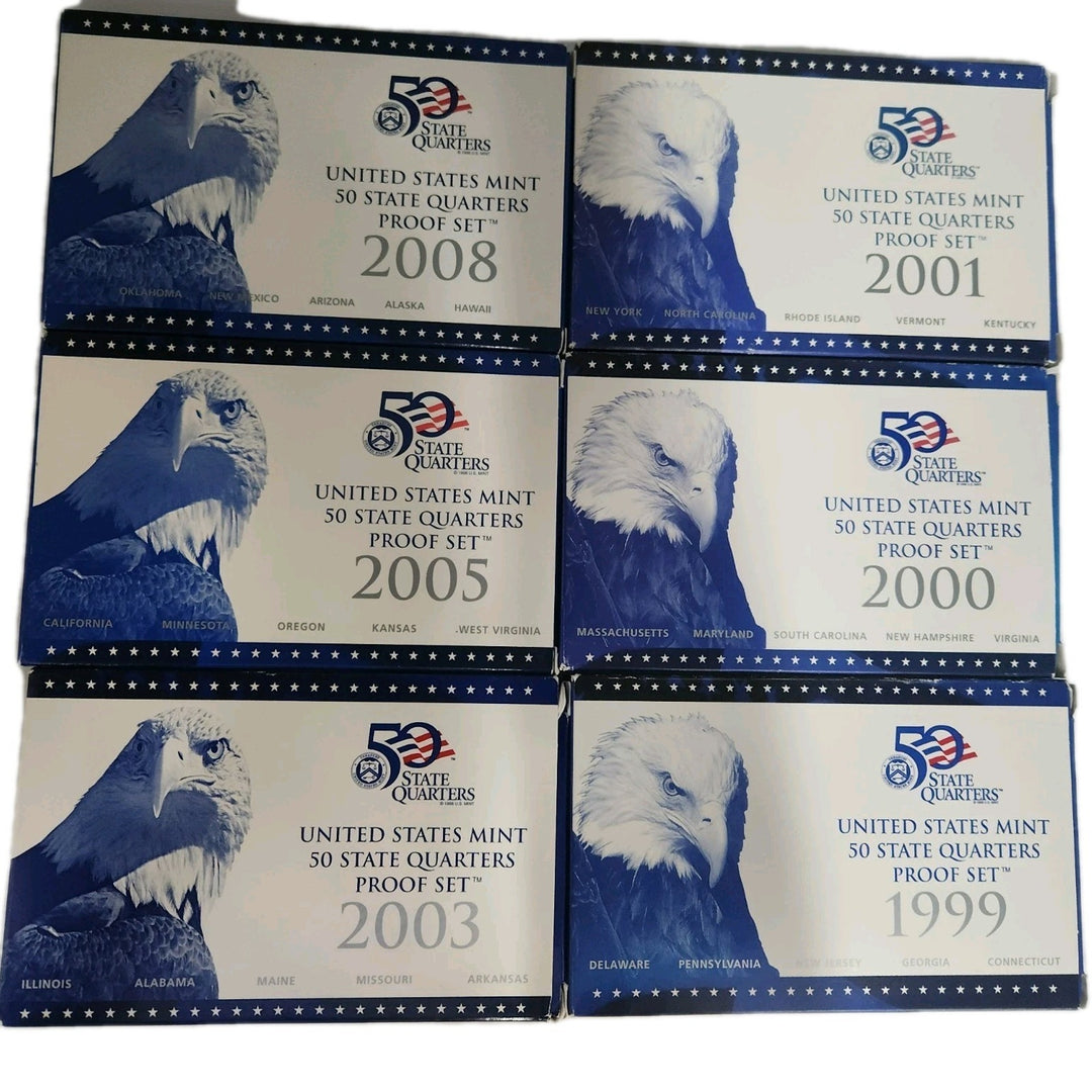 US Mint State Quarter Proof Sets 1999, 2000, 2001, 2003, 2005, 2008