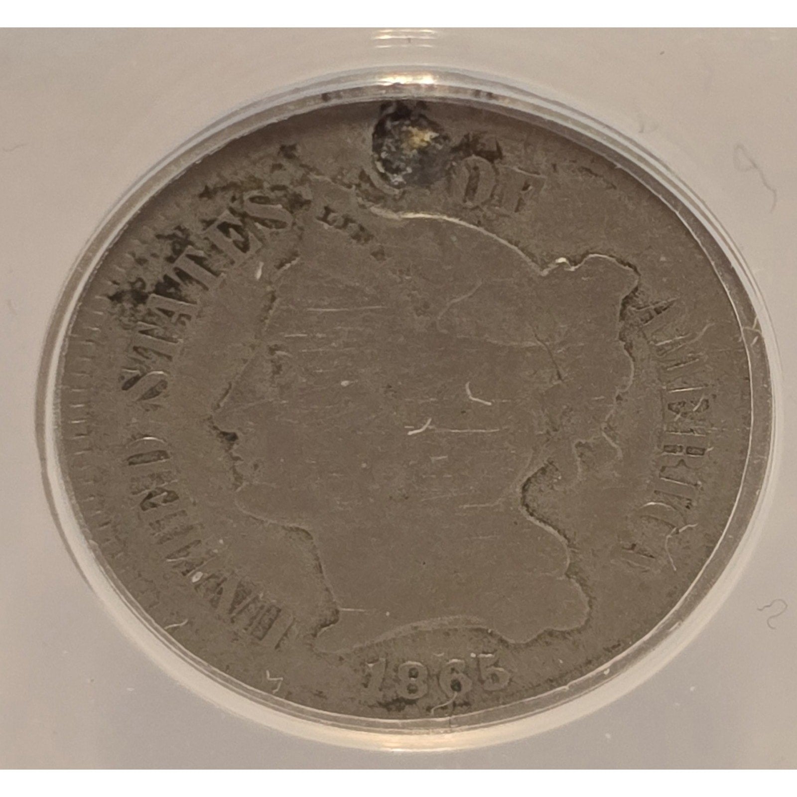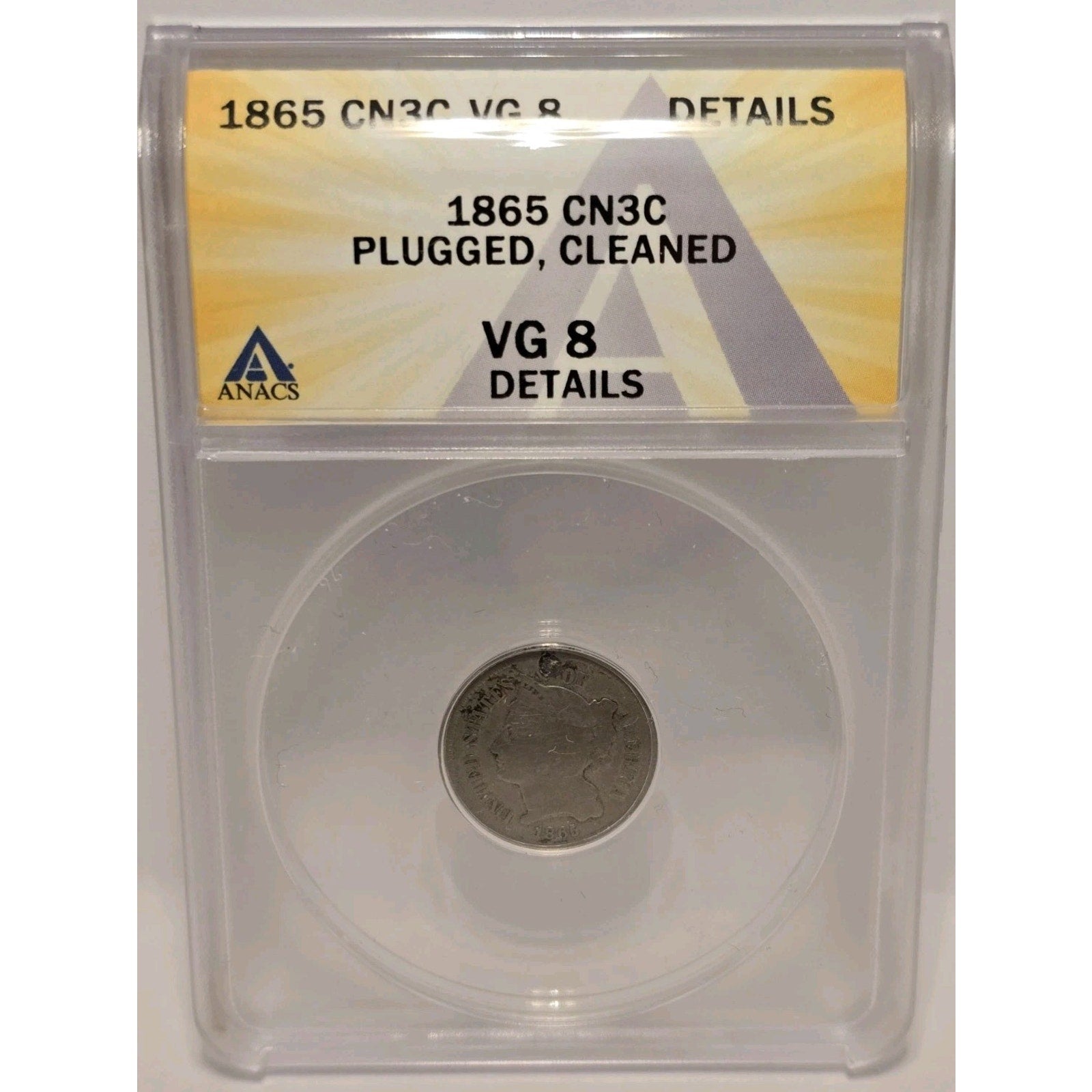 1865 CN3C Three Cent Nickel Three-Cent Piece ANACS VG 8 Details Plugged, Cleaned