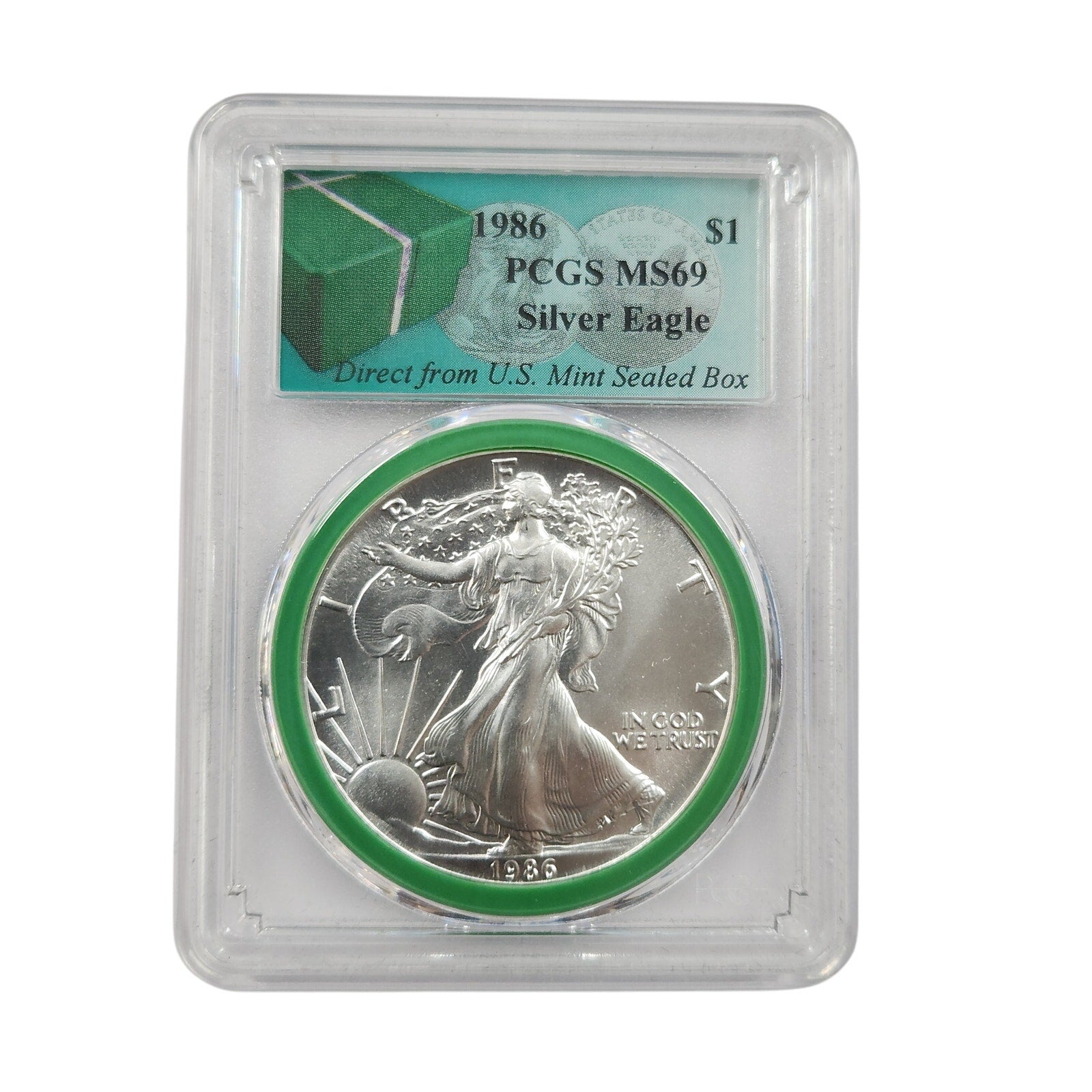 1986 US Silver Eagle PCGS MS69 Frist Strike US Mint Sealed Box