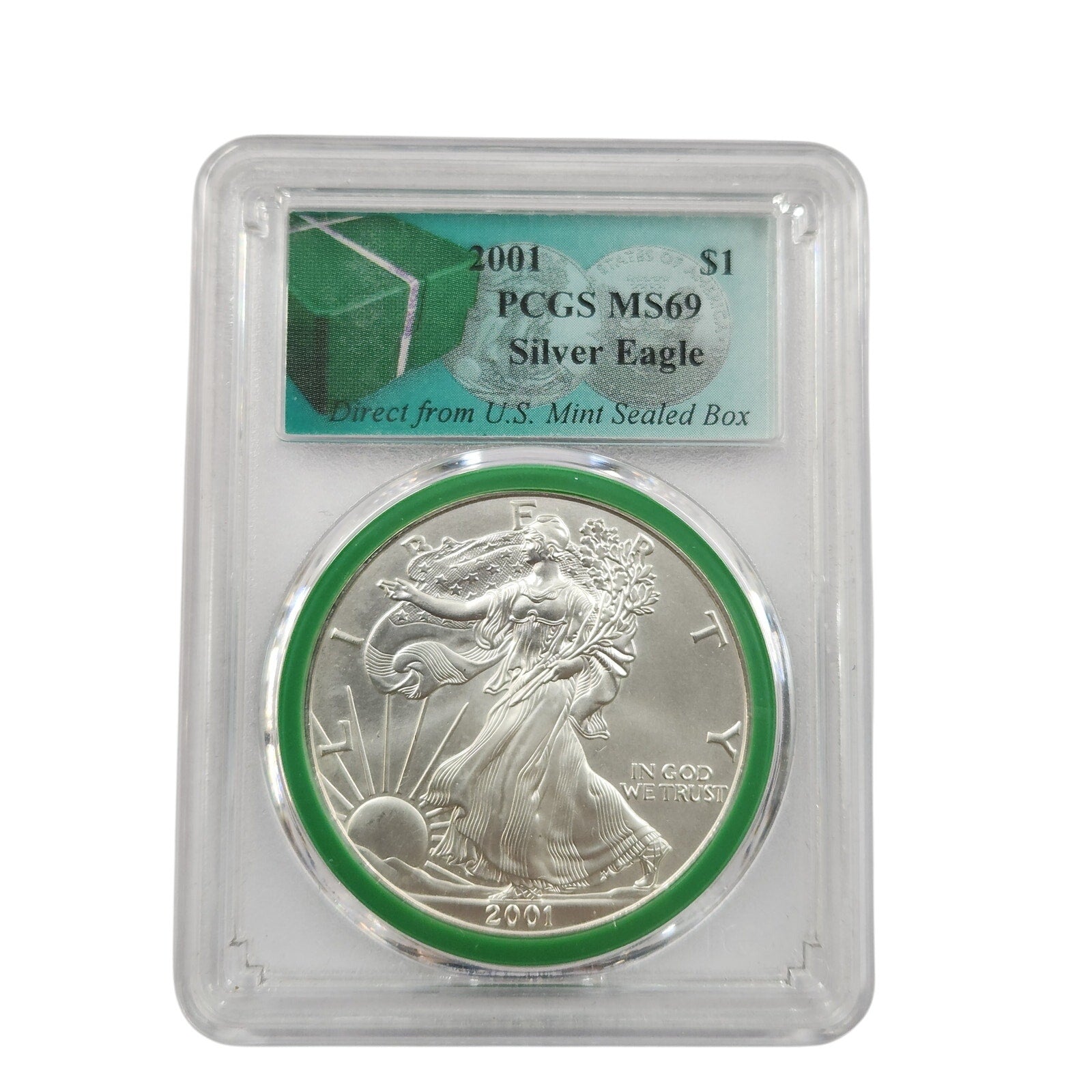 2001 US Silver Eagle PCGS MS69 Frist Strike US Mint Sealed Box 1 oz .999 Silver