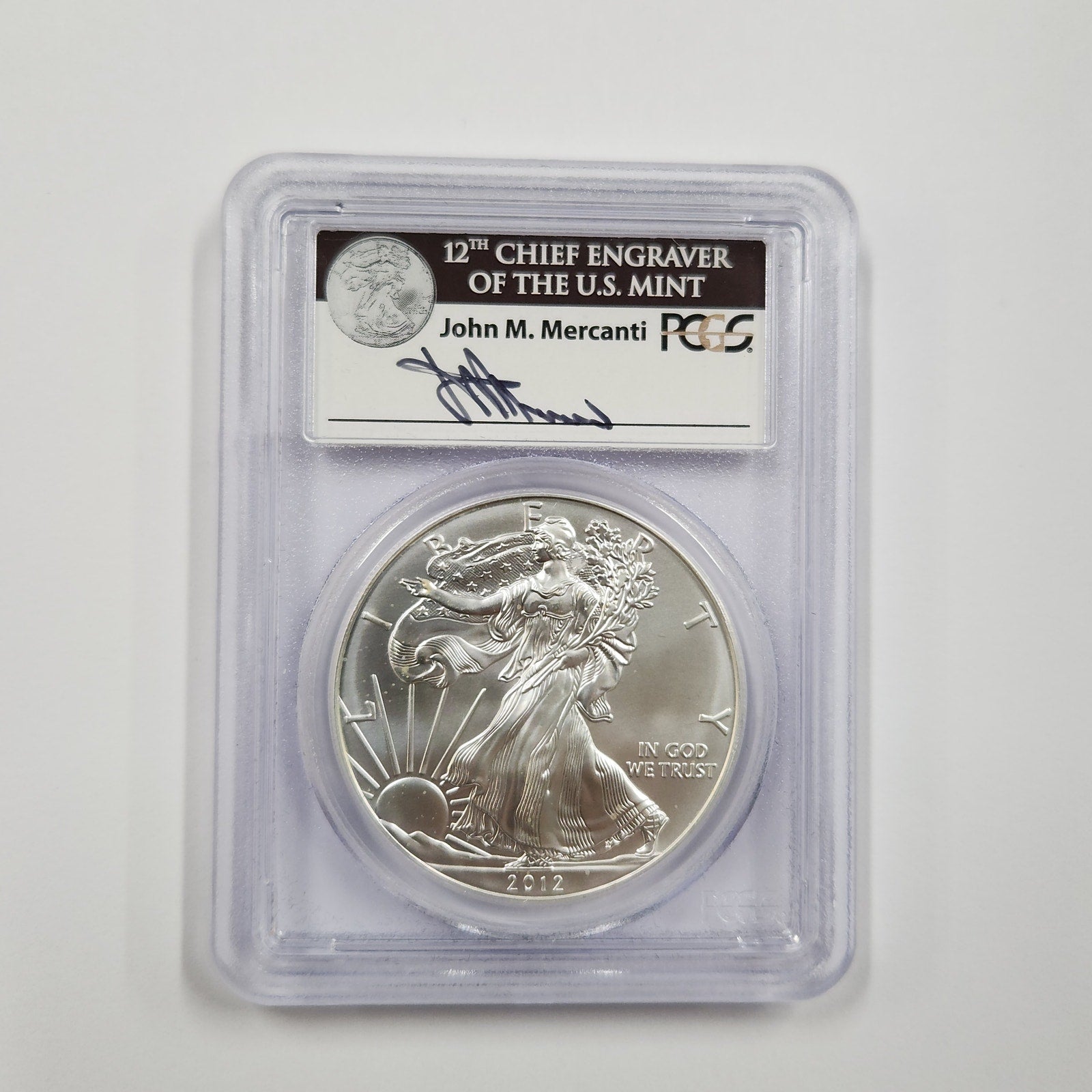 2012-S American Silver Eagle First Strike San Francisco John Mercanti PCGS MS70