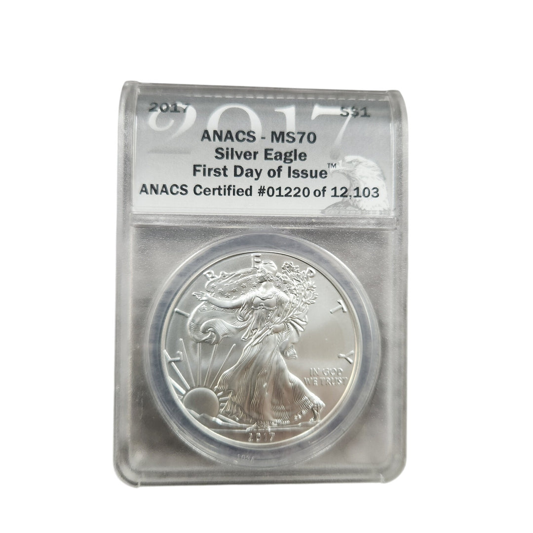 2017 American Silver Eagle $1 ANACS MS70 First Day Of Issue, FREE Shipping!