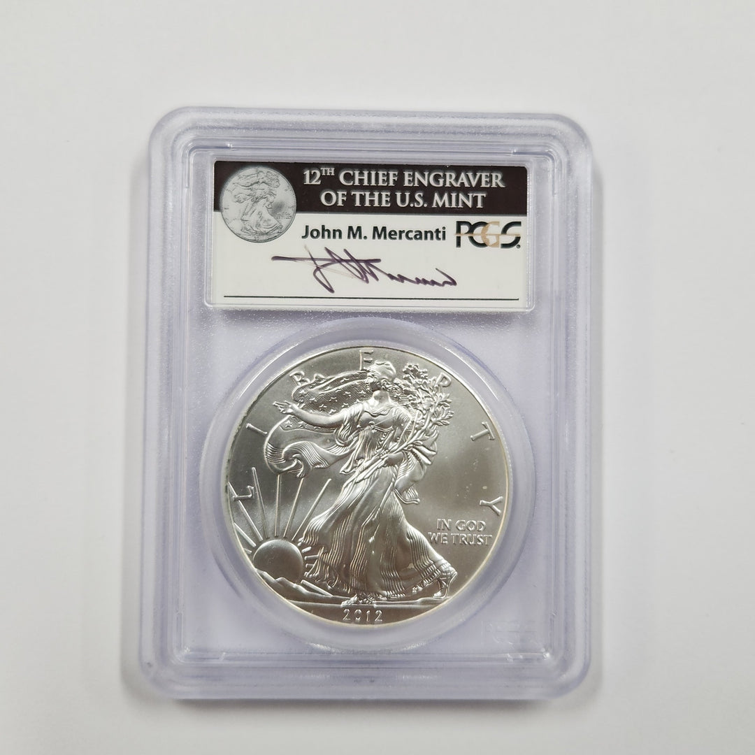 2012-W American Silver Eagle First Strike West Point John Mercanti PCGS MS70 1 oz .999 Silver