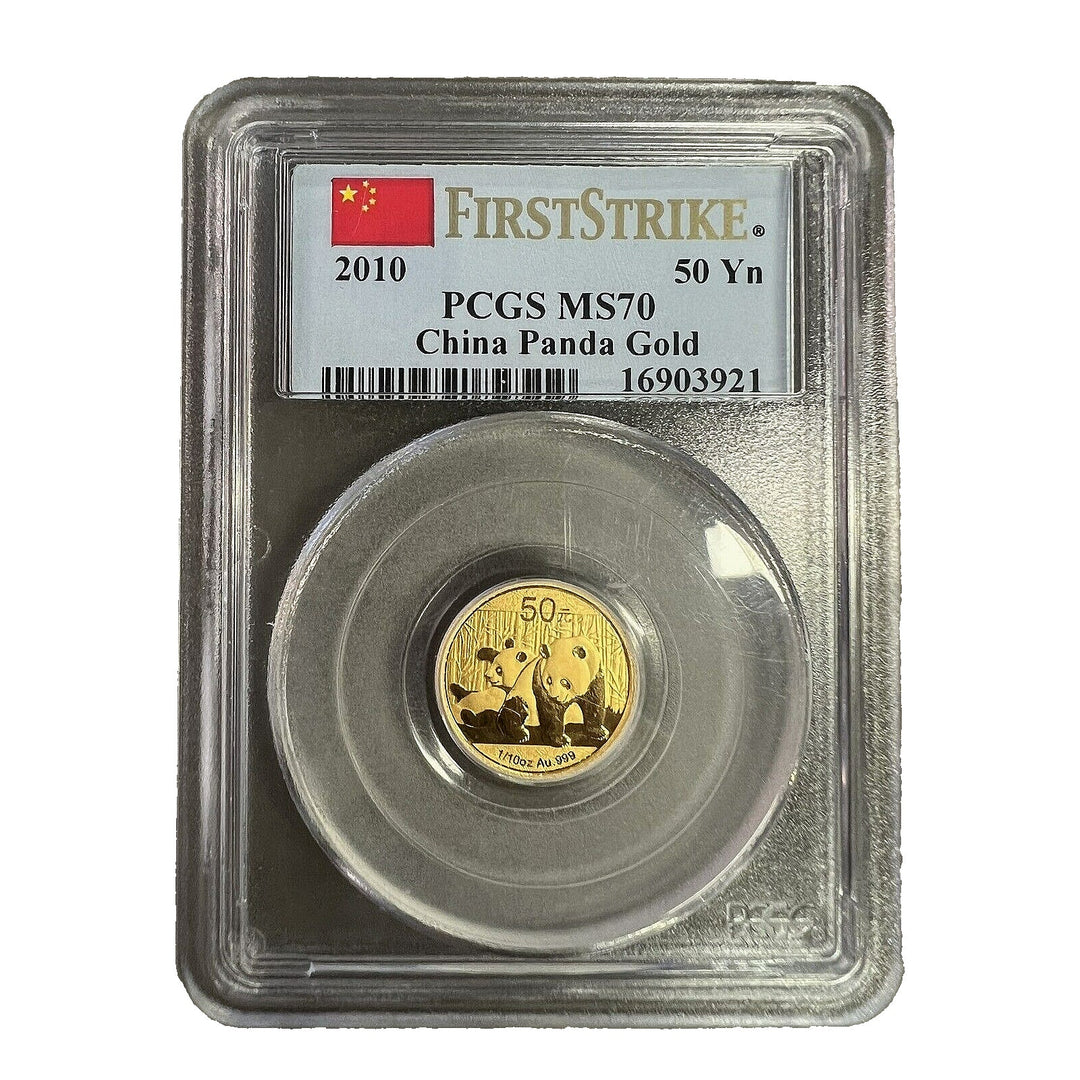 China 2010 1/10 Ounce Gold Panda 50 Yuan PCGS MS70 First Strike.