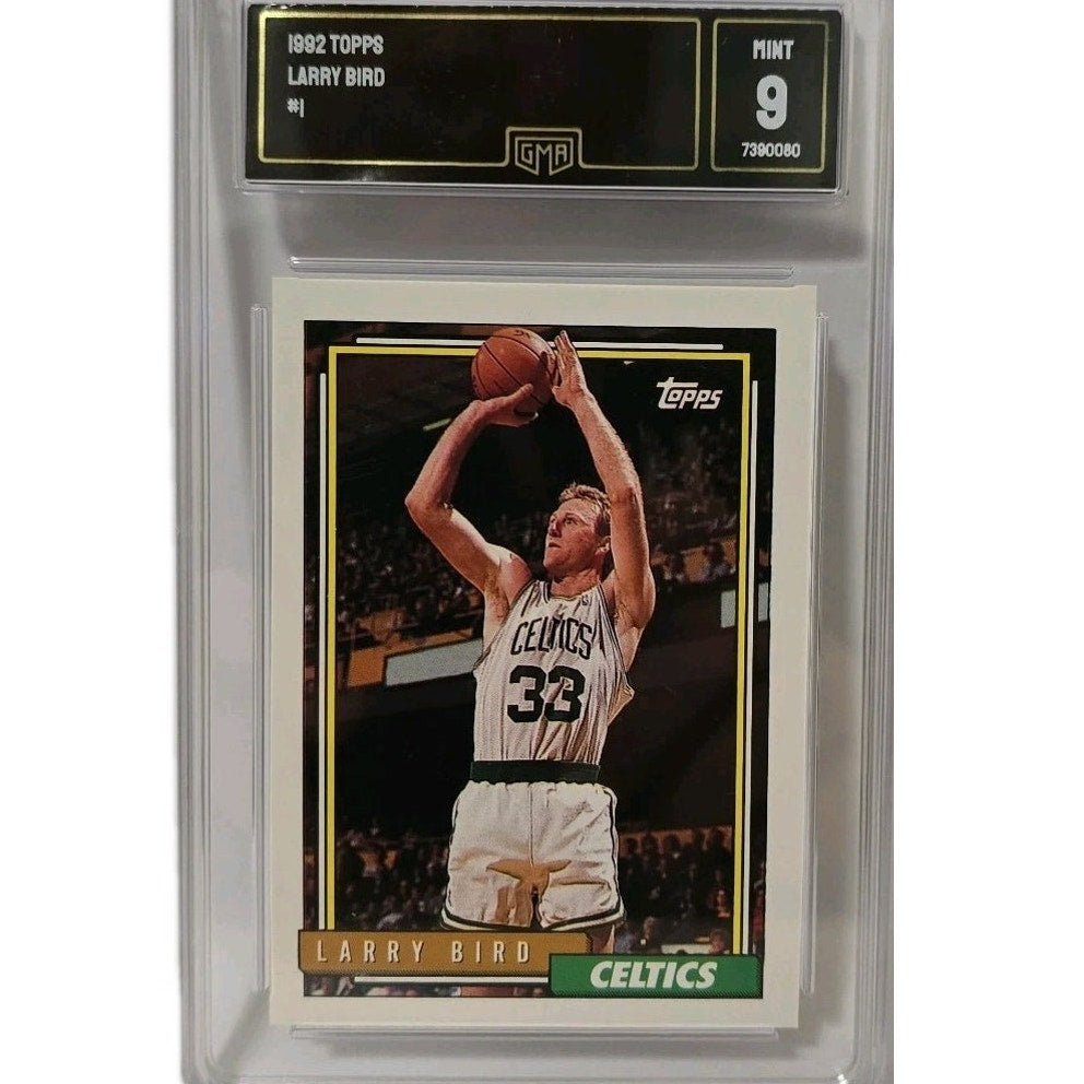 You are bidding on a 1992 Larry Bird #1 Topps card, graded GMA 9. This iconic card features the Boston Celtics legend in his prime. A must-have for any serious basketball card collector or Celtics fan.