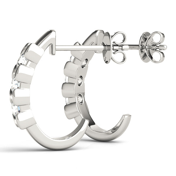 Sophisticated lab-created diamond earrings with 3 brilliant round stones, each 0.17 carats with VS-SI1 clarity and E-G color grade.