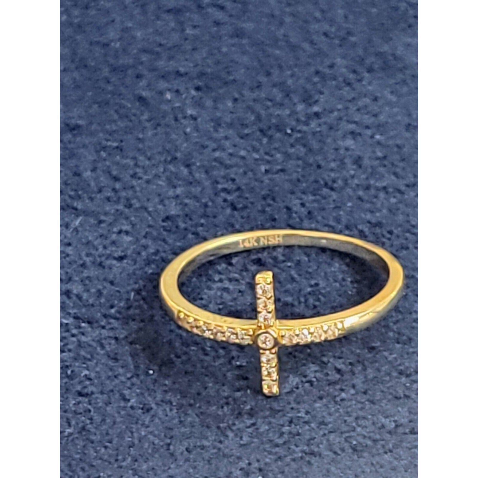 Whether you're looking for a special gift or a personal treat, this 14k Gold Beaded Sideways Cross Ring is sure to become a treasured piece.