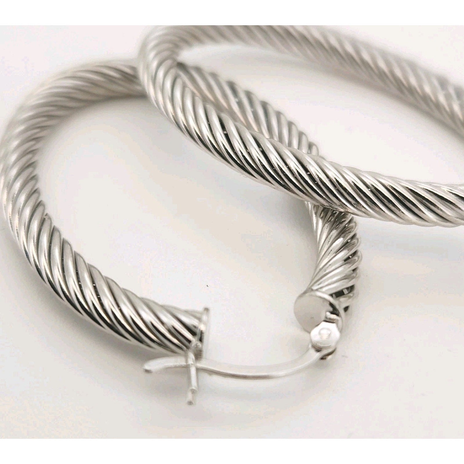 925 Sterling Silver Twisted Textured Hoop Earrings