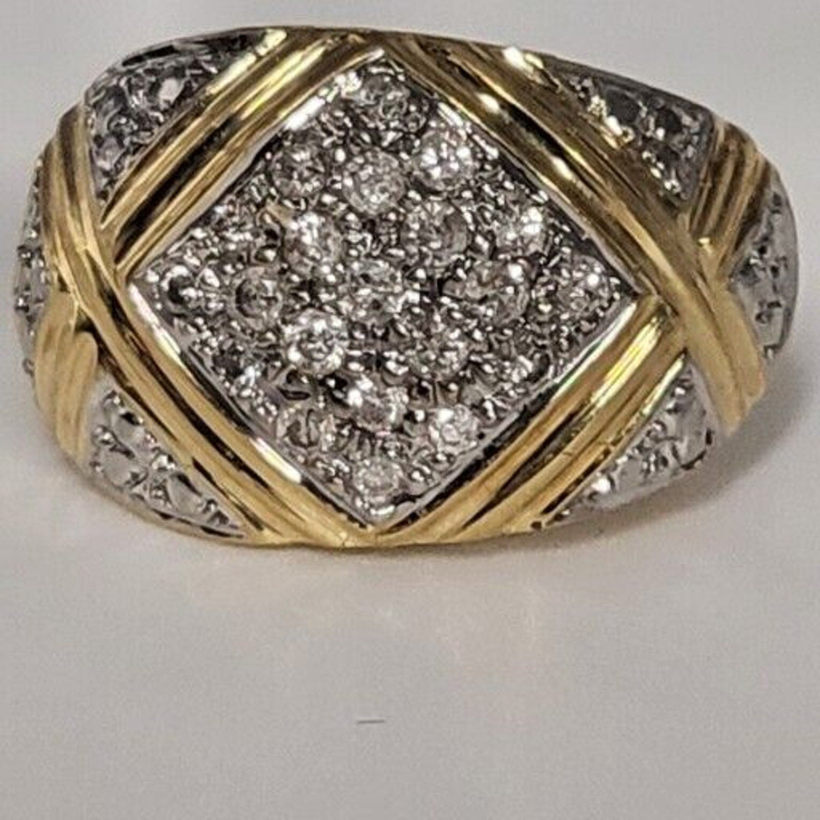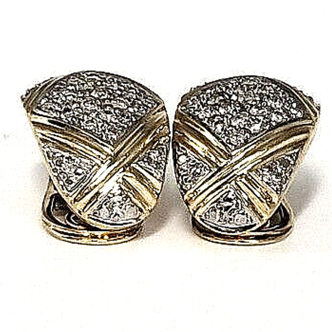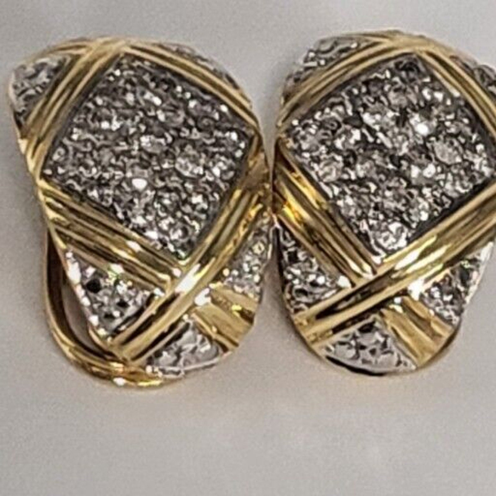 These are very attractive 14K yellow and white gold earrings with real diamonds, with a total weight of 10.7 grams of gold. The earrings are artfully crafted and sure to catch the eye. They make a wonderful gift for a loved one, or a special treat for yourself! Don't miss this opportunity to own a timeless piece of jewelry. Order now to add a touch of luxury and sparkle to your collection!