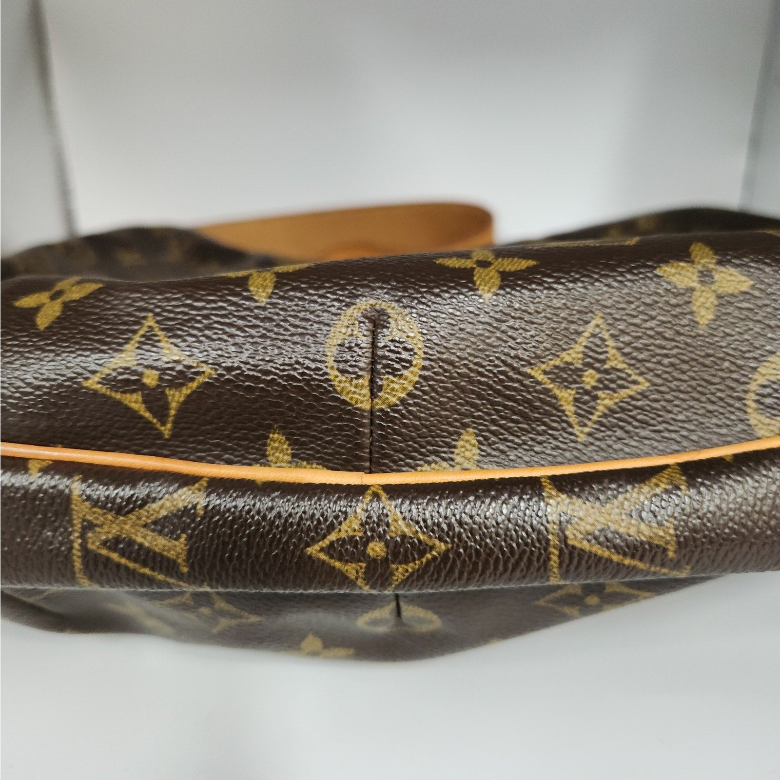 Elegant Louis Vuitton crescent shaped shoulder bag crafted in the iconic Brown monogram canvas with natural leather trim and gold tone hardware. Features a comfortable adjustable leather strap and secure top zipper closure. The softly silhouette makes it easy to carry while offering ample space for daily essentials. Shows light wear consistent with normal use, enhancing it's vintage charm. A timeless and versatile piece perfect for everyday wear or casual outings.