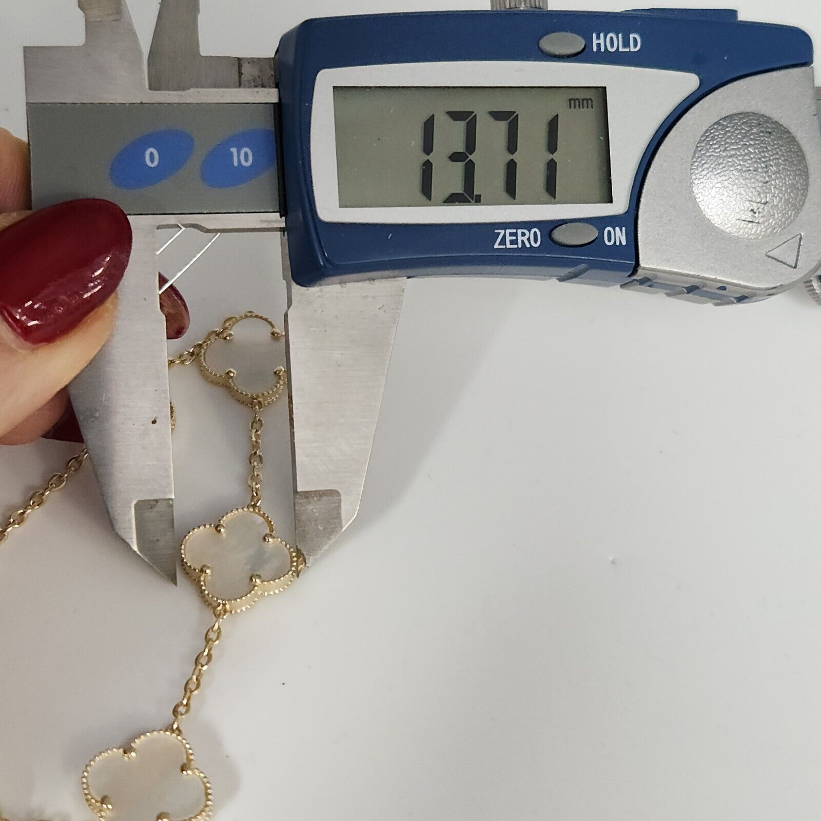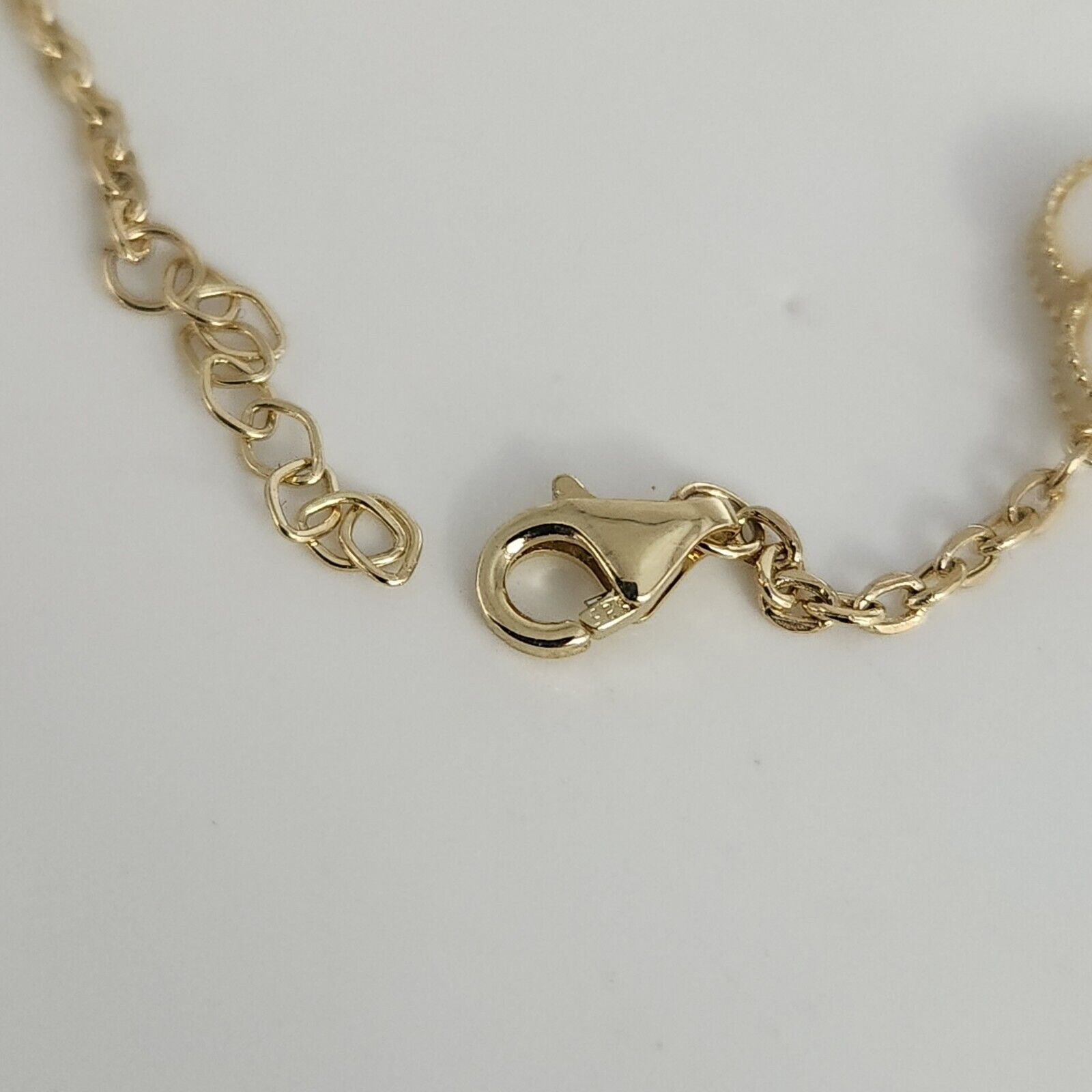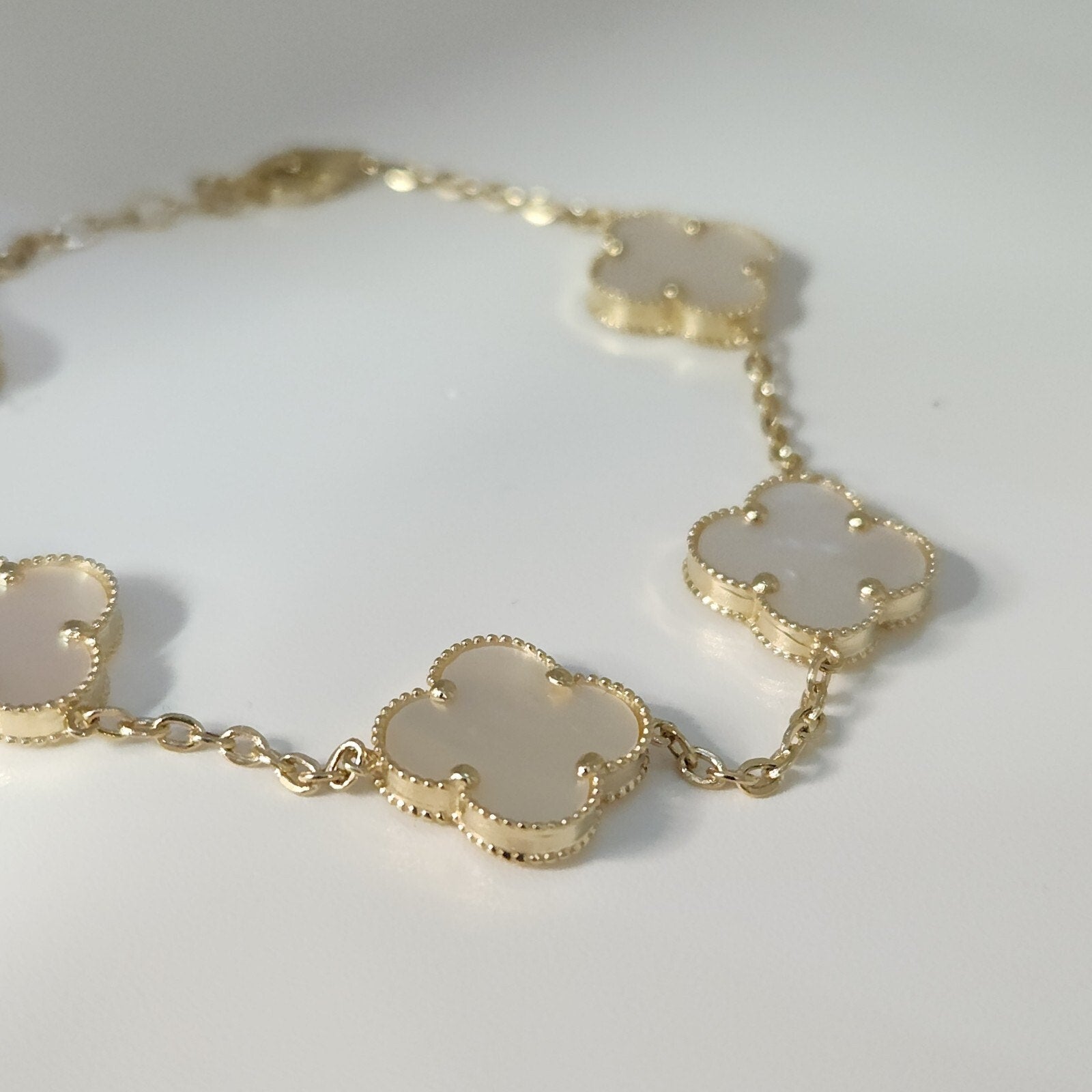 14k Yellow Gold Set Of Mother Of Pearl Flowers Bracelet 7.5" And Earrings