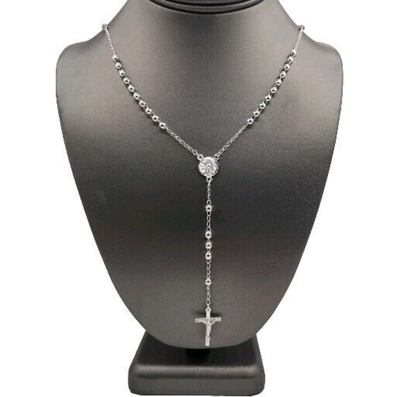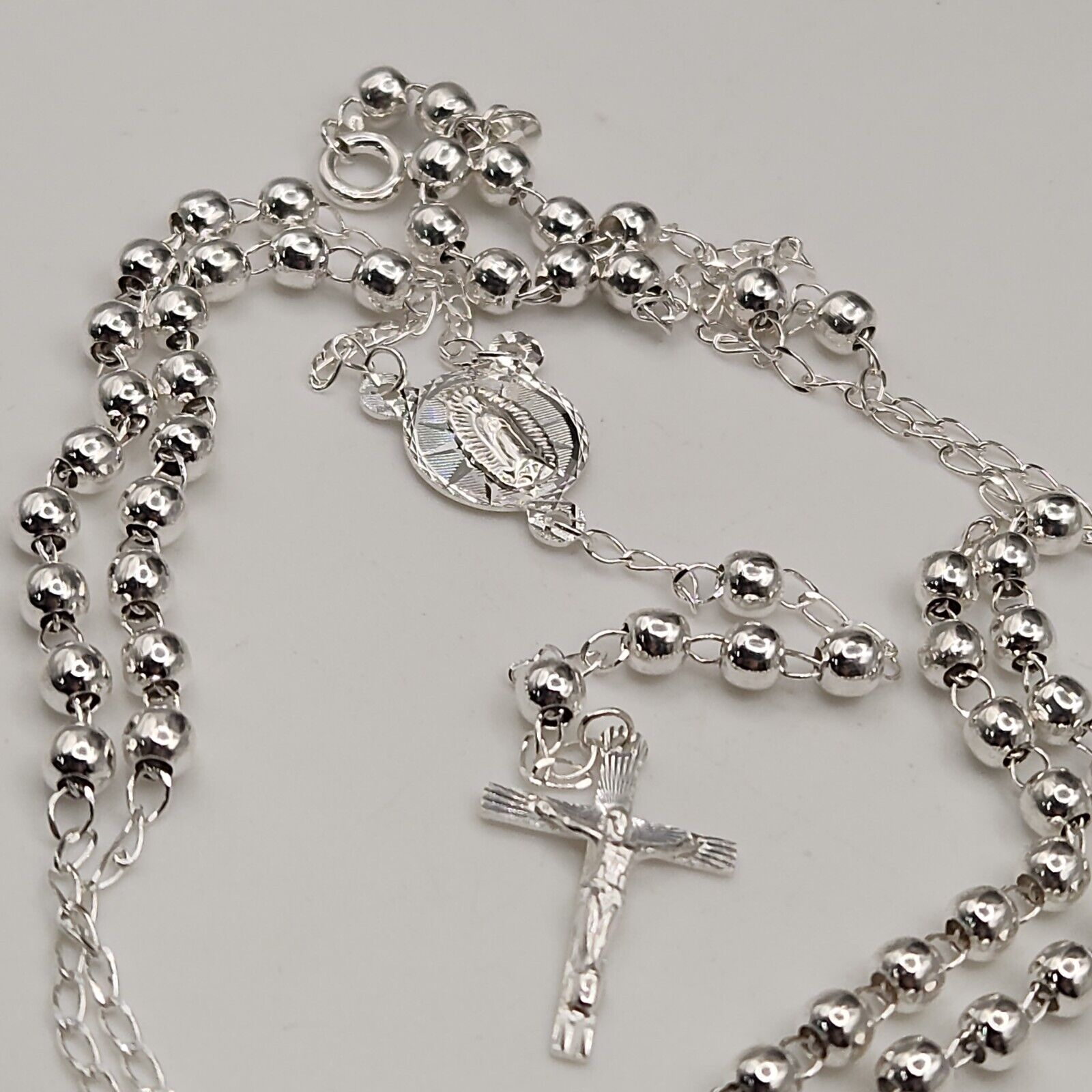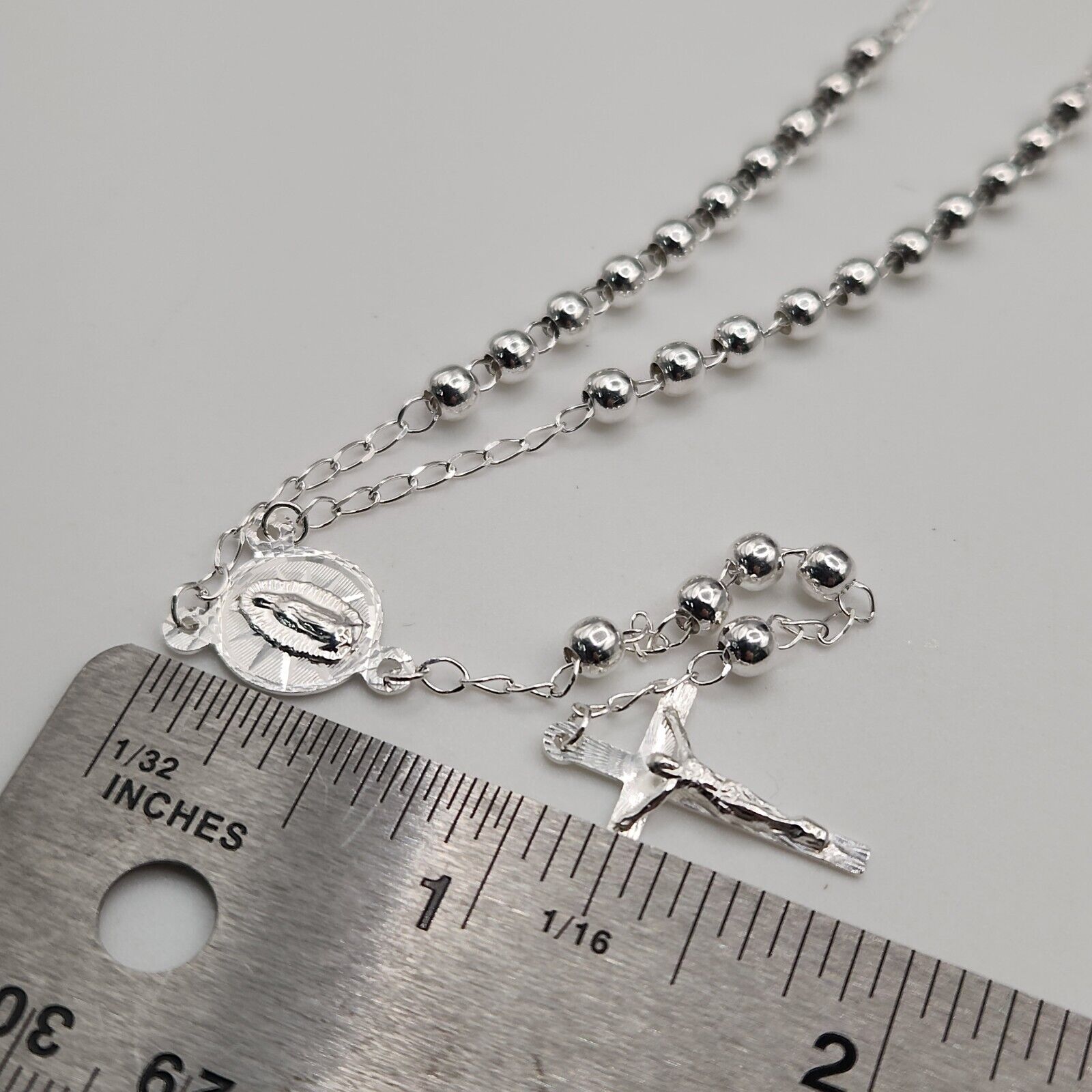 Beautiful 925 Sterling Silver Rosary 4MM Necklace 24"