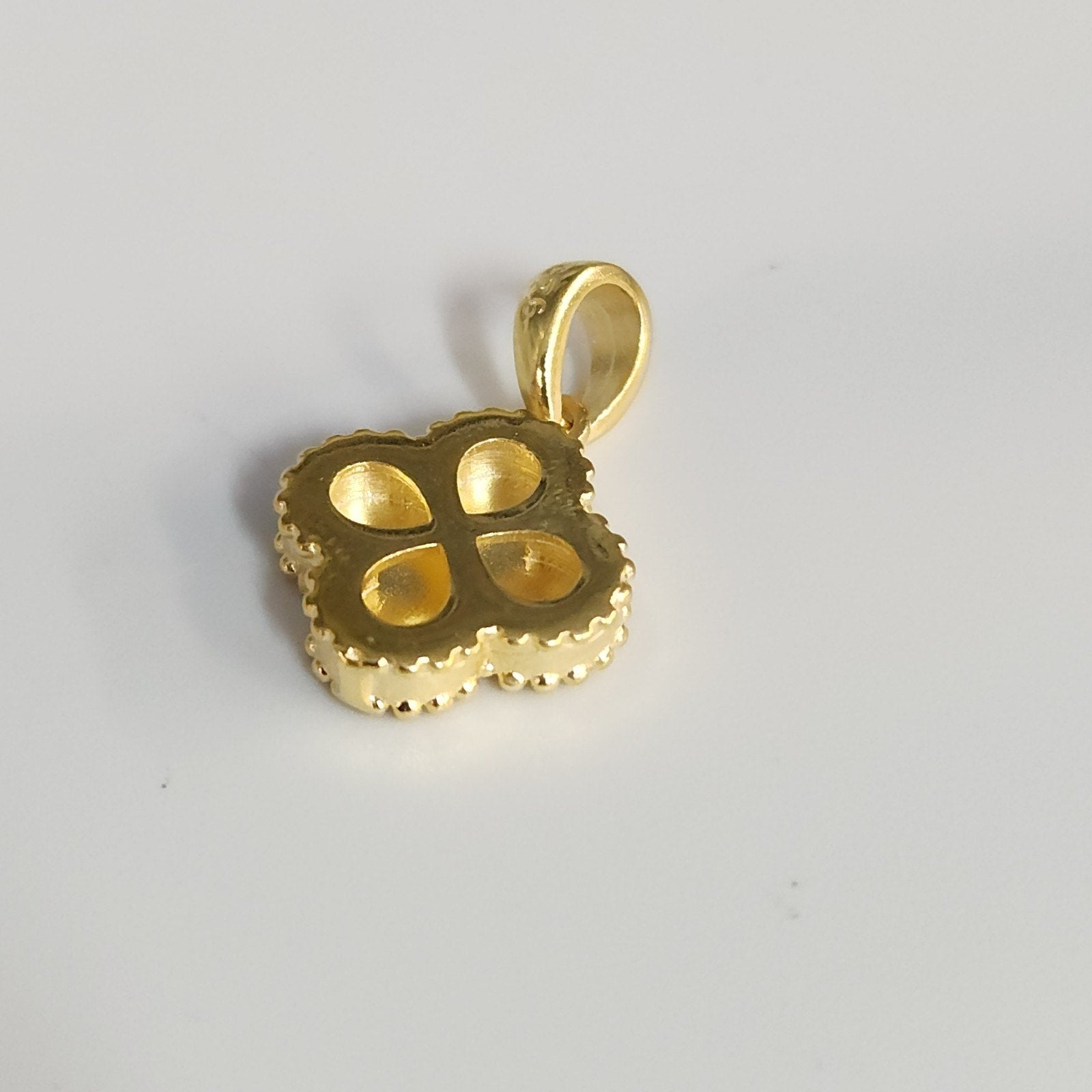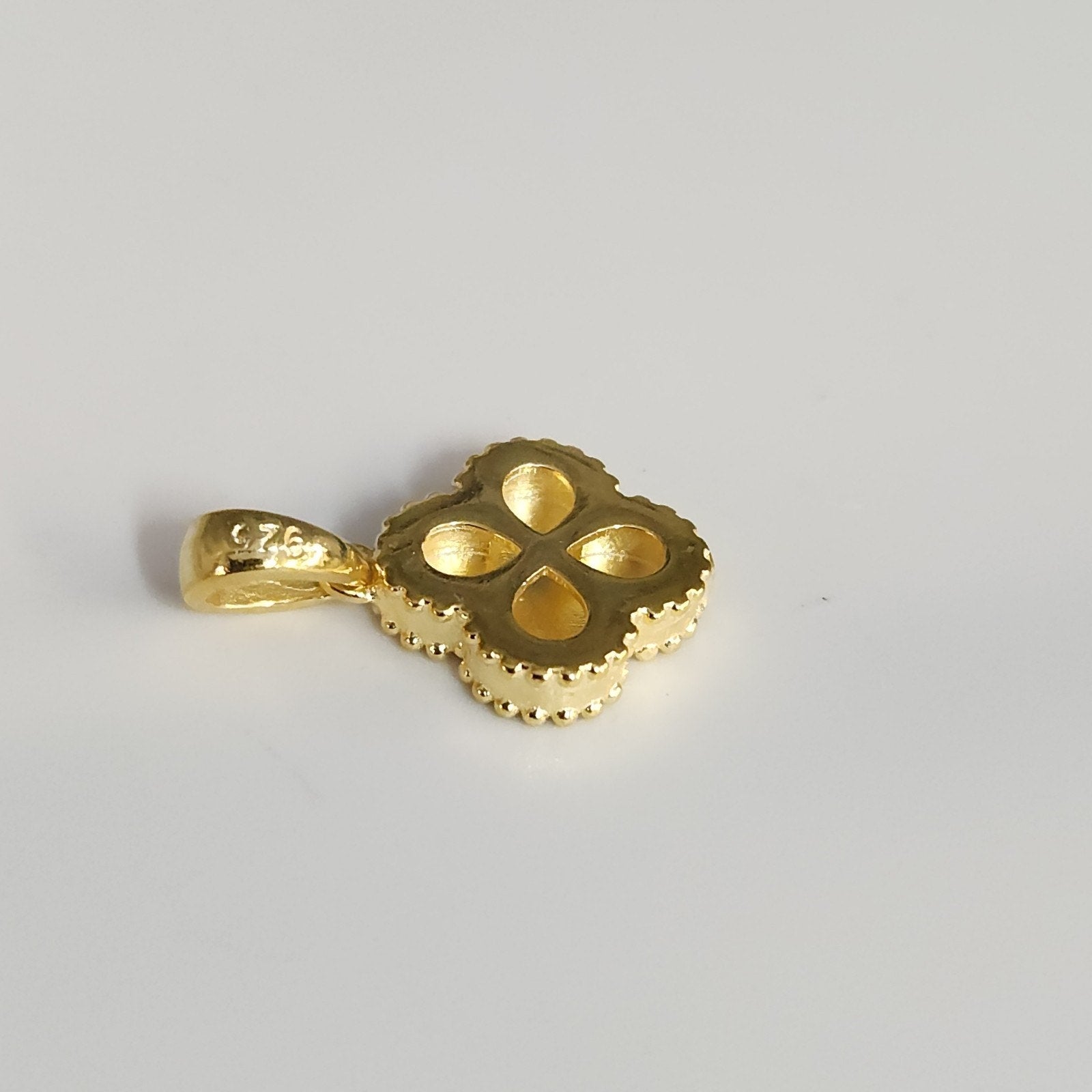 The product is a charming sterling silver charm with a gold finish, featuring a beautiful clover design. Made with a purity of 925 sterling silver, this charm is perfect for adding a touch of elegance to any charm bracelet or necklace. With its stunning design and high-quality craftsmanship, this charm is a lovely addition to any jewelry collection.