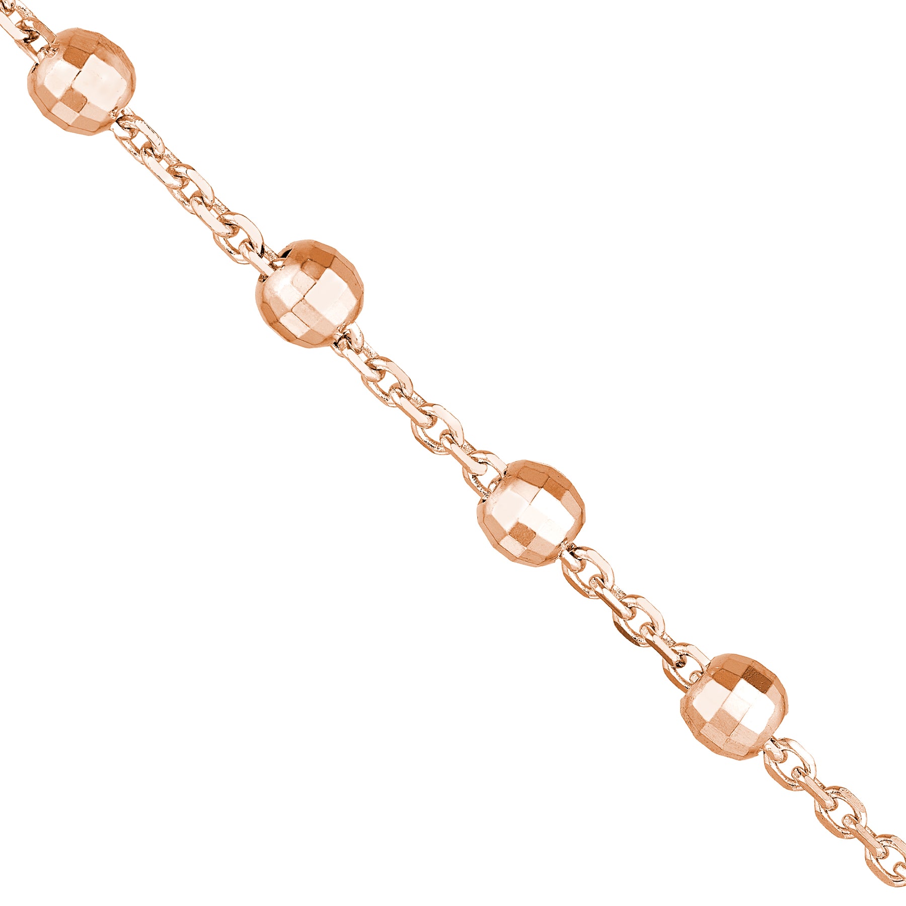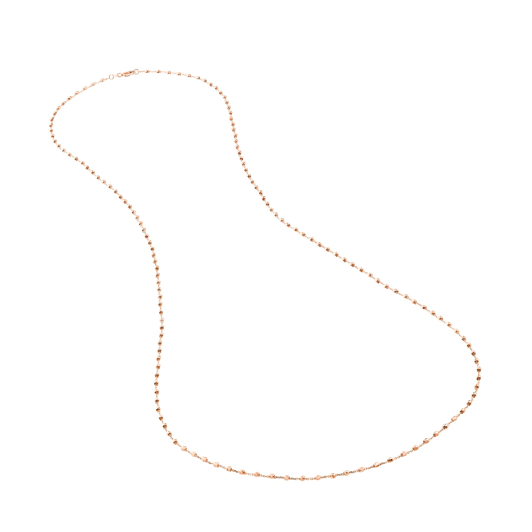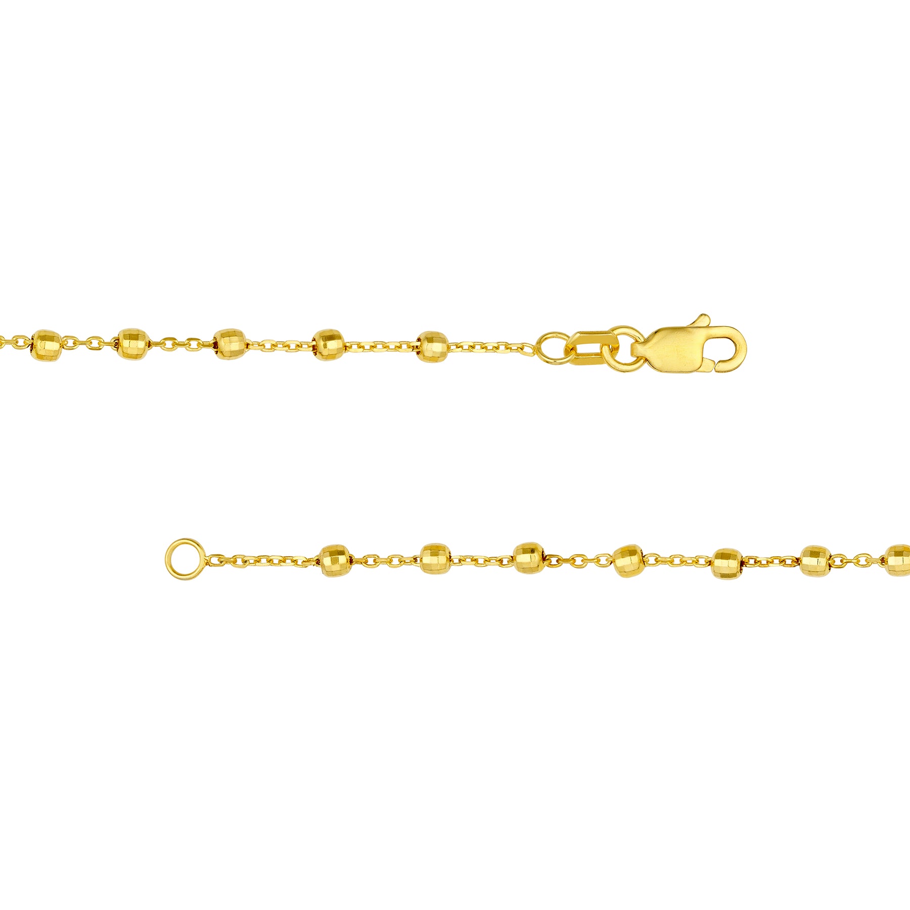 Try this unique version of the Cable Chain, which features 2.5mm diamond-cut beads.  The Cable Chain is available in select lengths in 14K gold or sterling silver which is flash plated in gold.