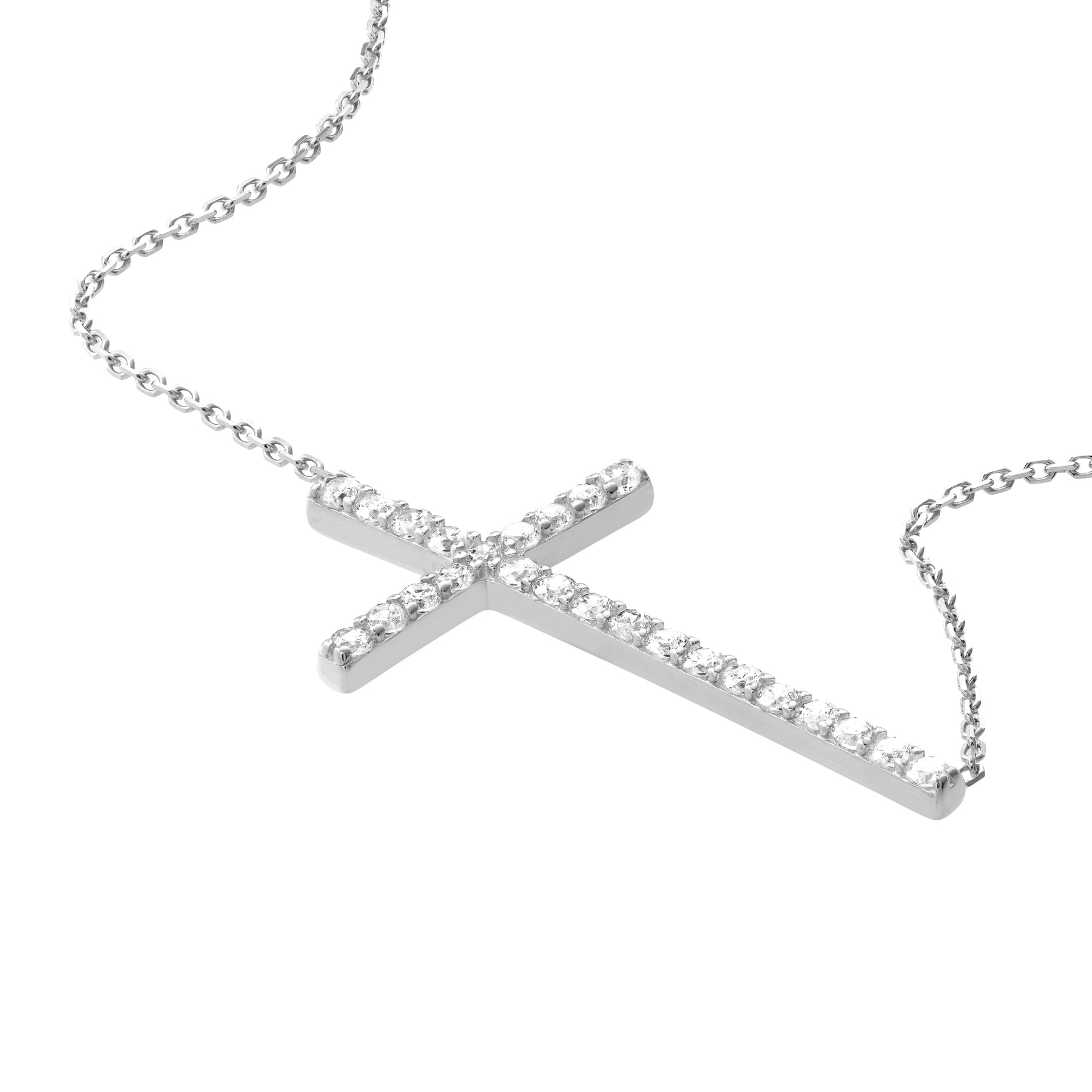 Plated Sterling Silver Long CZ Cross Necklace