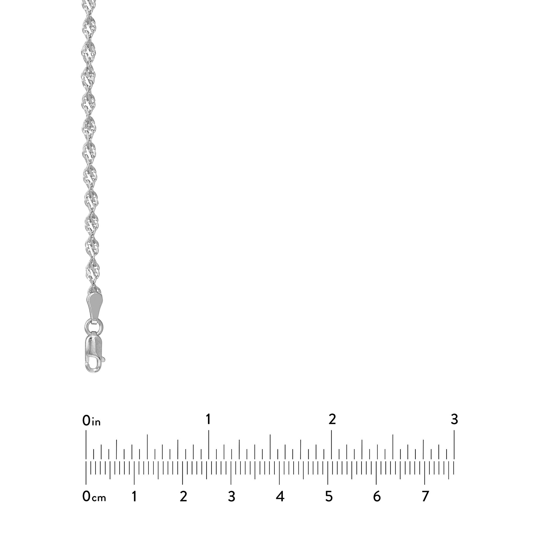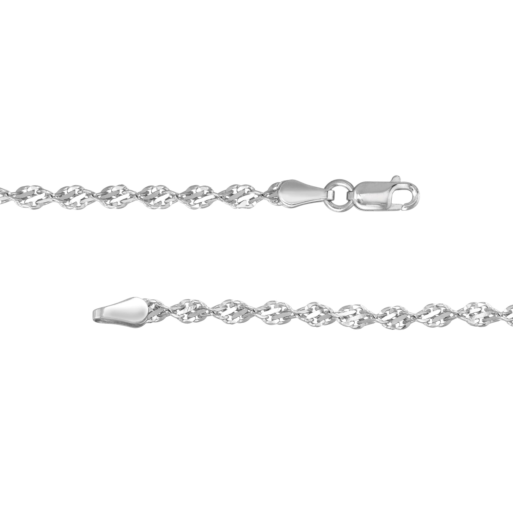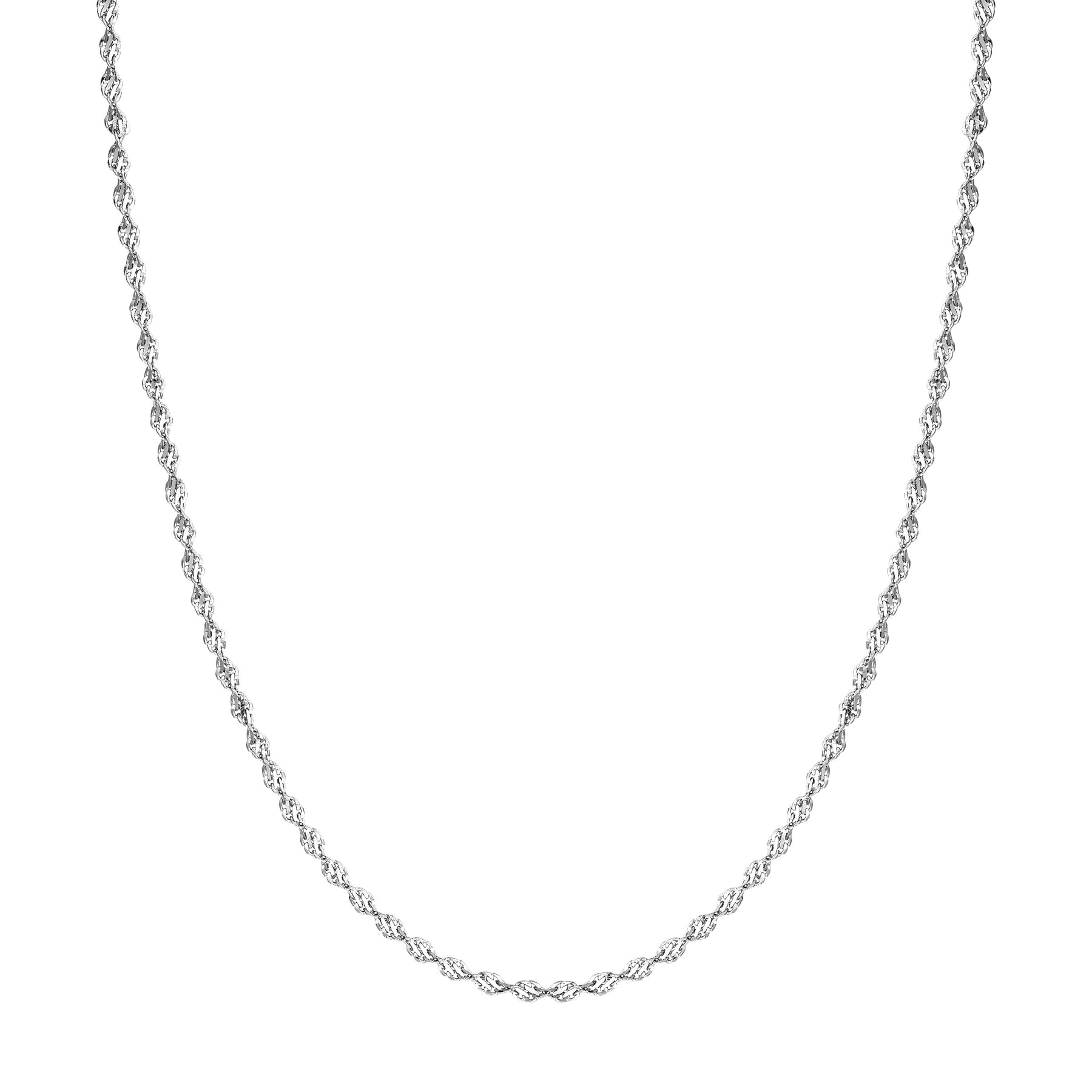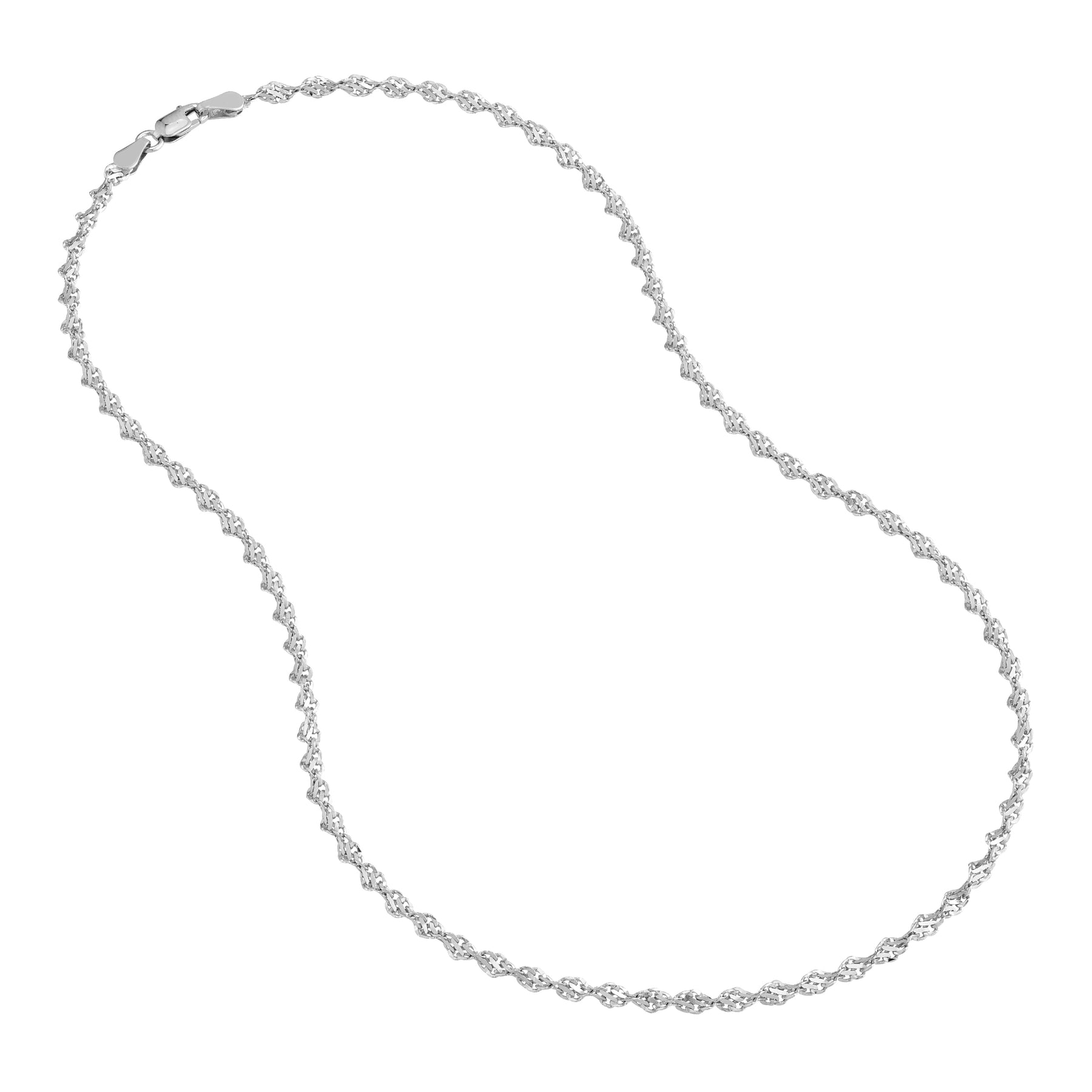 A chain with a twist. The unique look of the rhodium plated sterling silver Dorica Chain is nothing short of eye-catching. Measures 2.9mm wide and secures with a lobster lock.