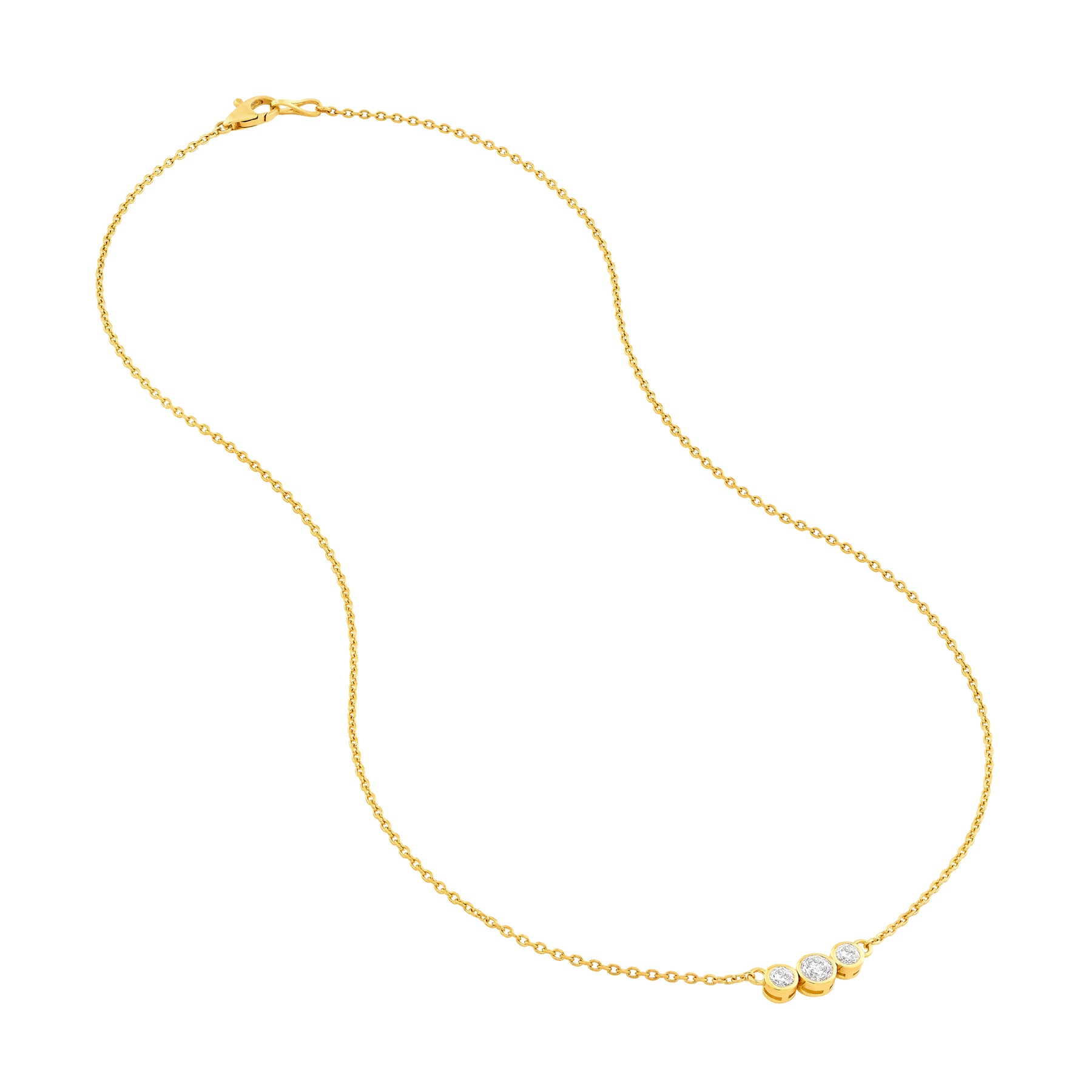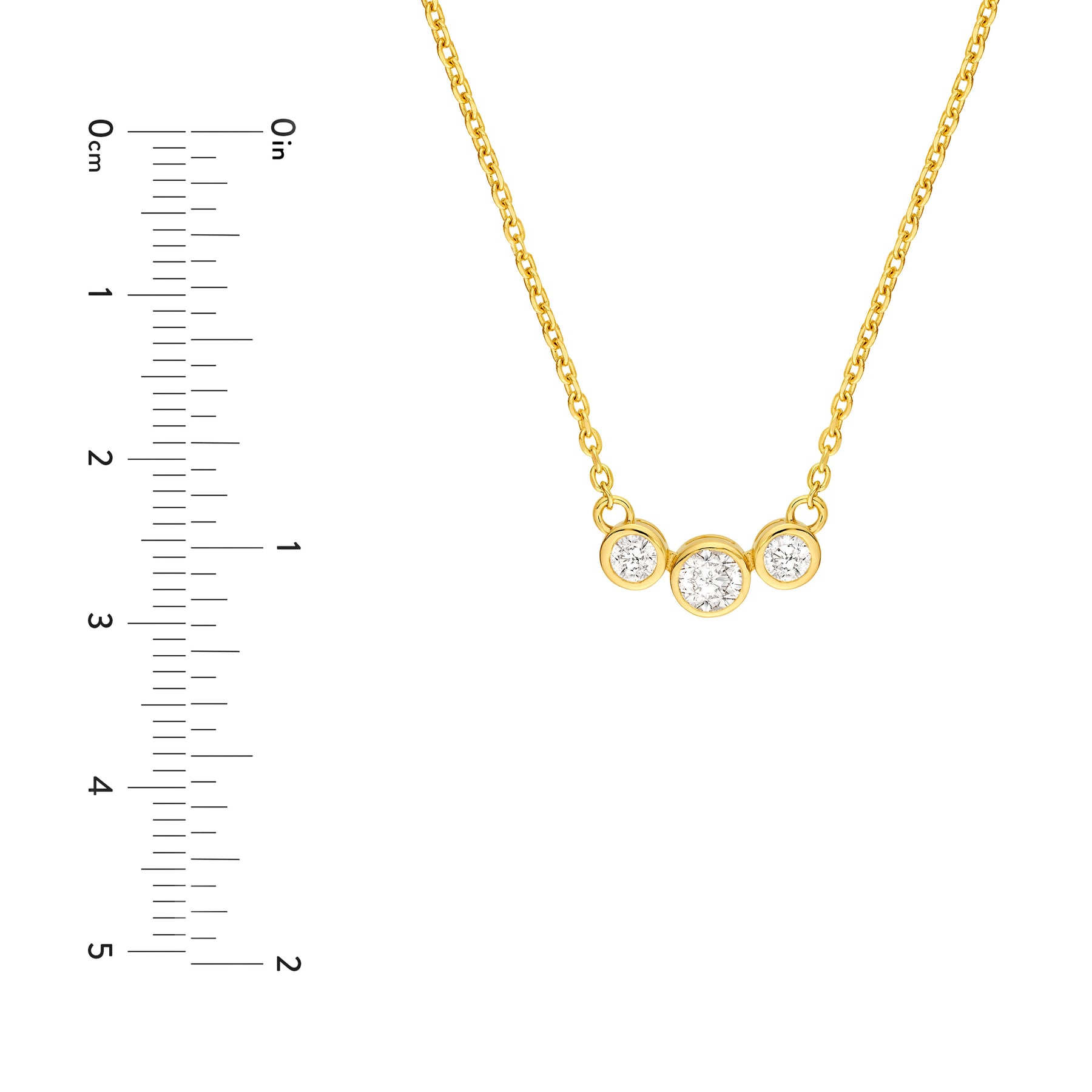 Elevate your style with this Bezel Set 3 Stone Graduated Diamond Necklace. Featuring dazzling diamonds totaling 3/8tcw, this timeless piece adds a sophisticated touch to any look.