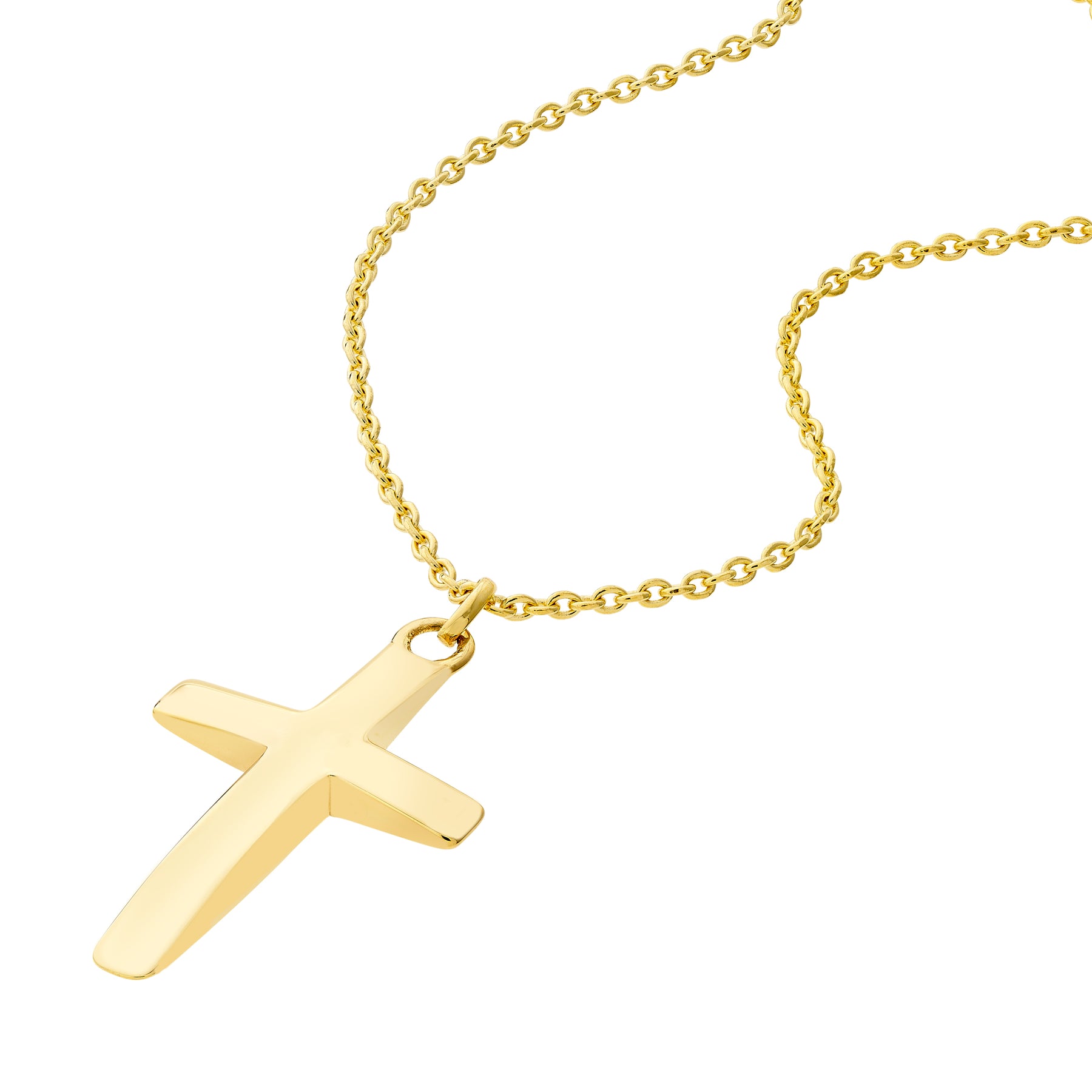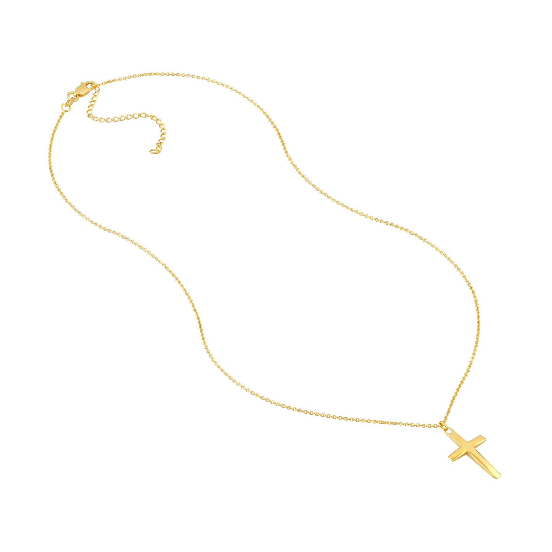 Show off your faith with statement fashion jewelry. The curved cross pendant necklace is crafted in 14K gold on a 2 inch adjustable chain.