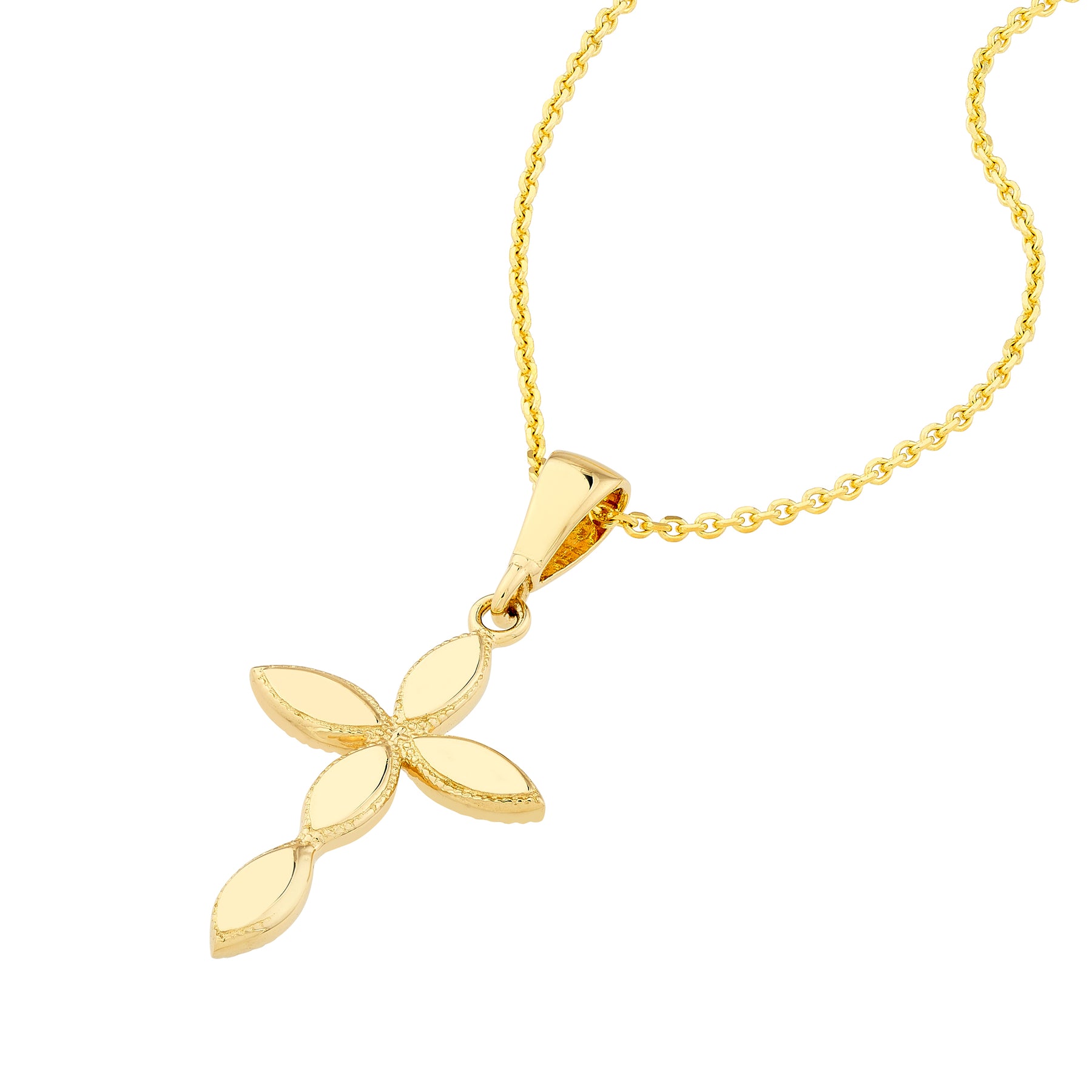 You'll love this cross pendant that is designed with connected marquise shaped sections.   Place it on your favorite chain to make a stunning necklace.