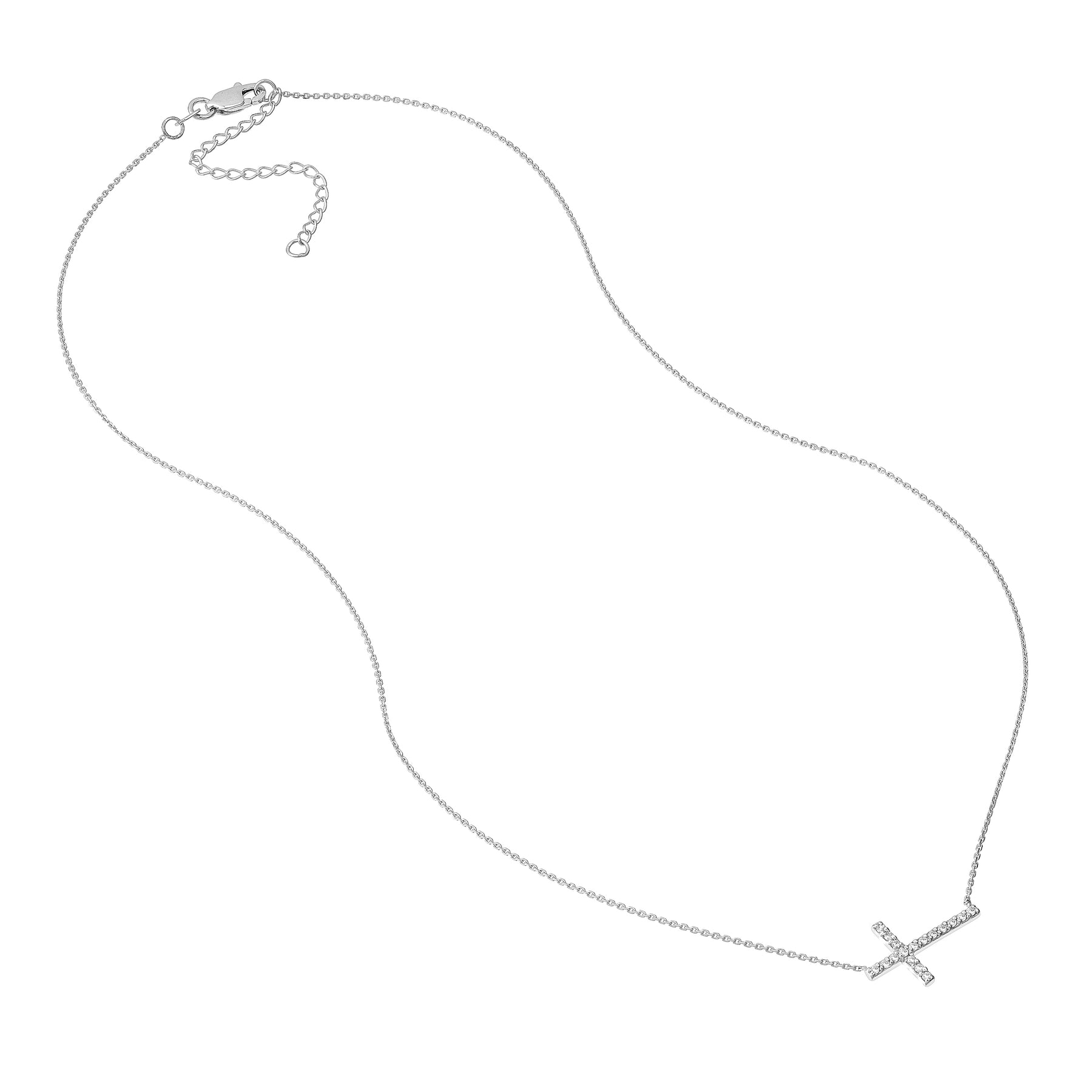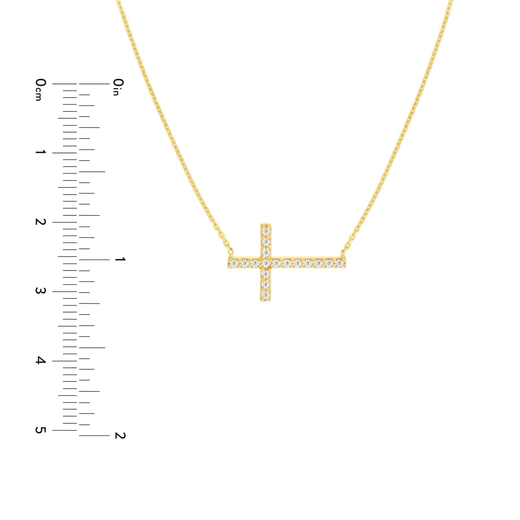 Show off your faith with elegant conviction by wearing this sideways cross necklace in 14K gold. Set with 1/5tcw of glittering diamonds, this add just the right amount of sparkle to any oufit.