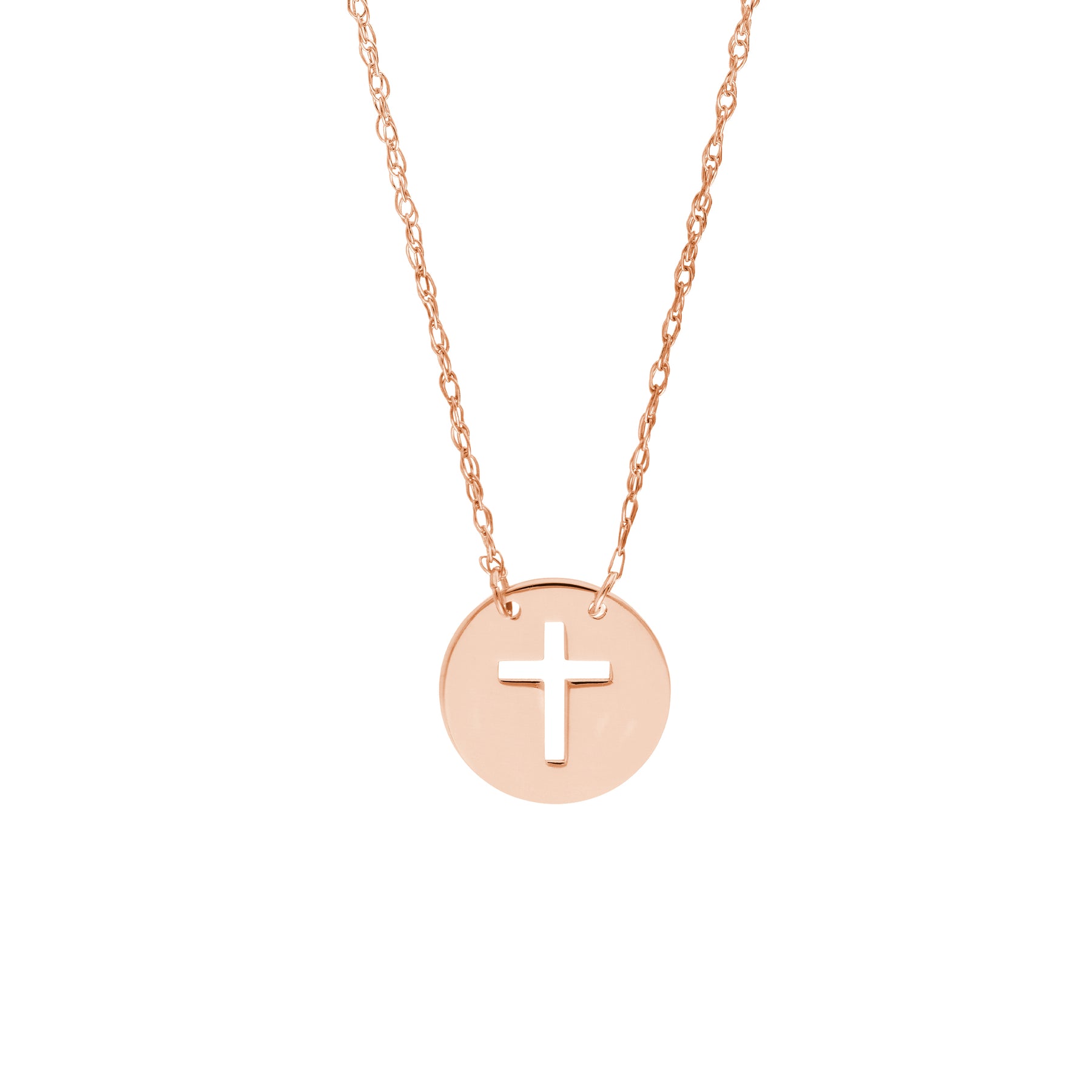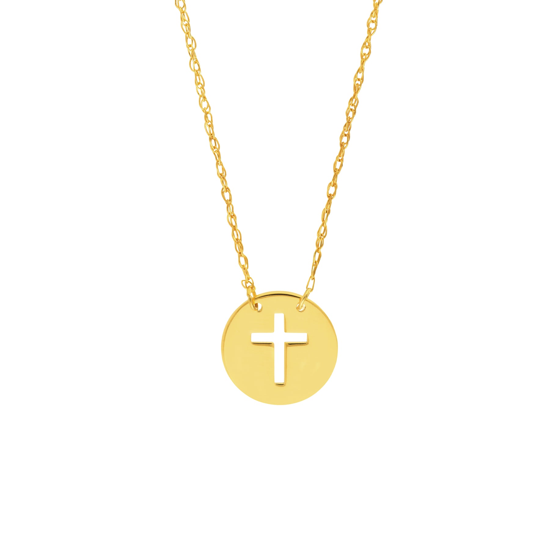 This necklace makes a subtle statement that is perfect for daily wear. You'll quickly add this mini disc necklace with a cross cutout to your jewelry rotation.