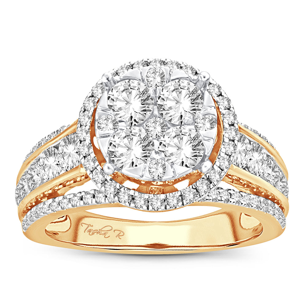 Chic 14K Yellow Gold 2CT Lab Diamond Womens Fashion Ring
