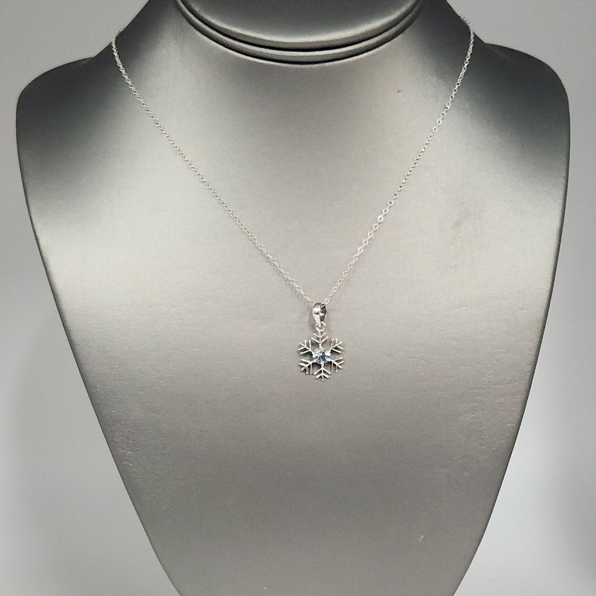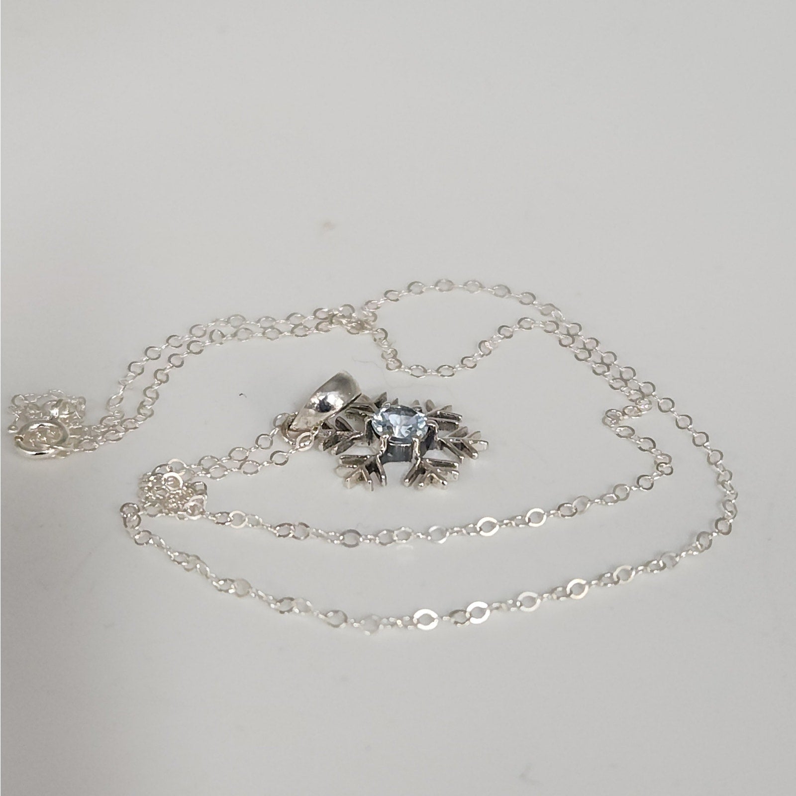 Sterling Silver Snowflake Pendant Necklace With Natural Blue Topaz