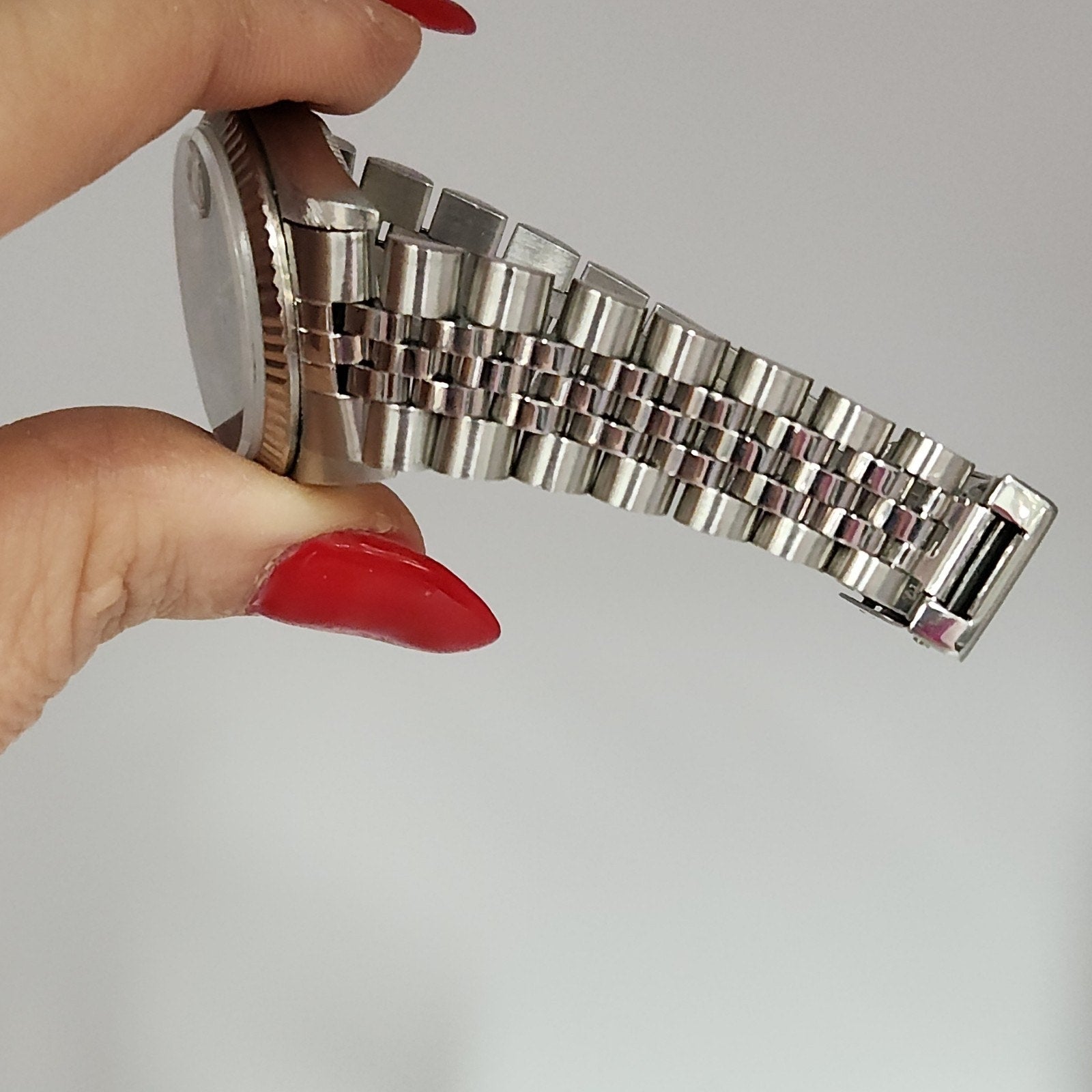 Elevate your timekeeping with the Rolex 31MM Stainless Steel Gray Oyster Perpetual Datejust Watch, a testament to luxury and precision. Crafted with a 31 mm stainless steel case and a complementary gray band, this timepiece offers a sleek design that's versatile for both casual and formal occasions. The unisex watch features the iconic Rolex Oyster Perpetual model, renowned for its reliability and sophistication. Its Datejust movement ensures that you'll never miss a beat, while the classic display provides a timeless look that complements any ensemble. AFTERMARKET DIAL