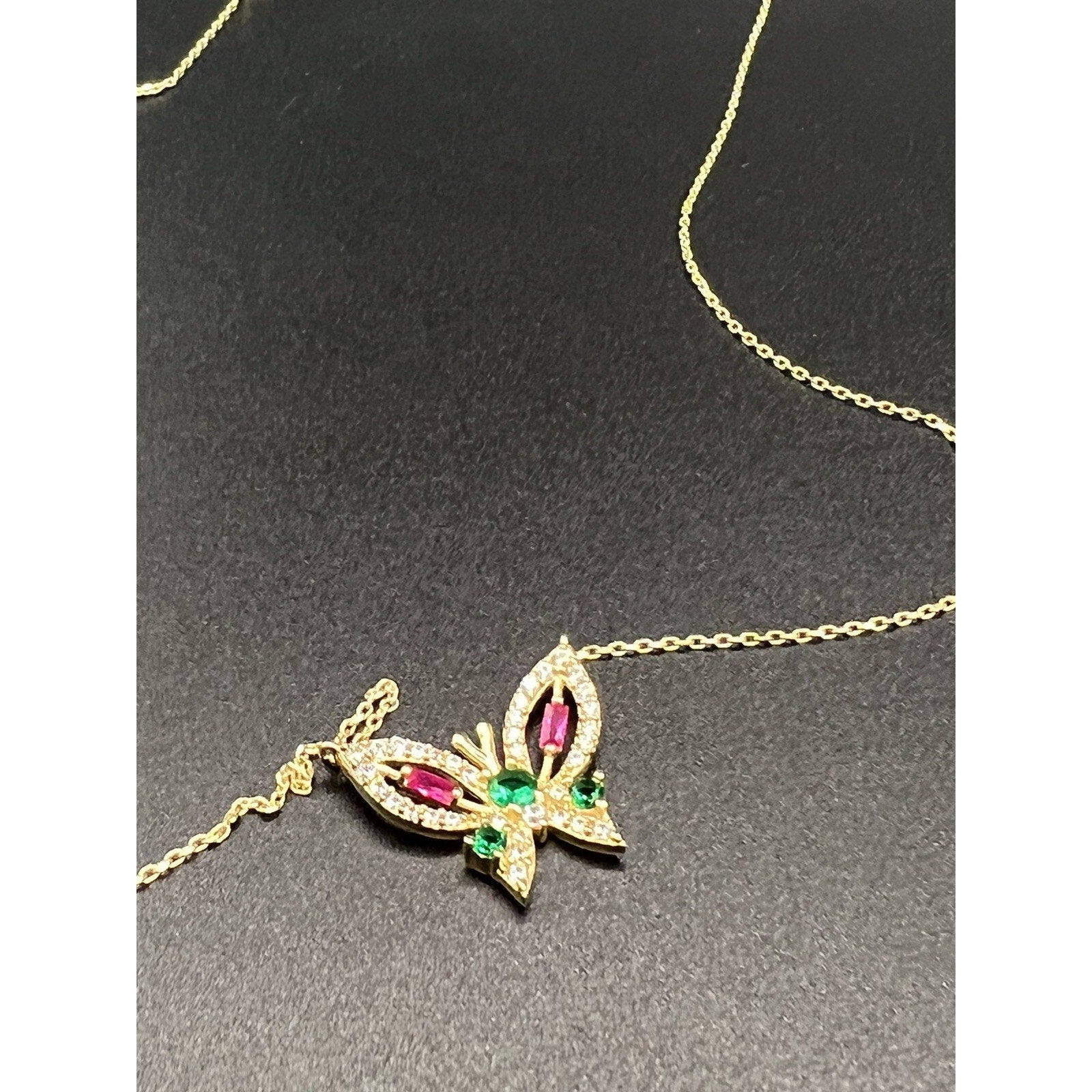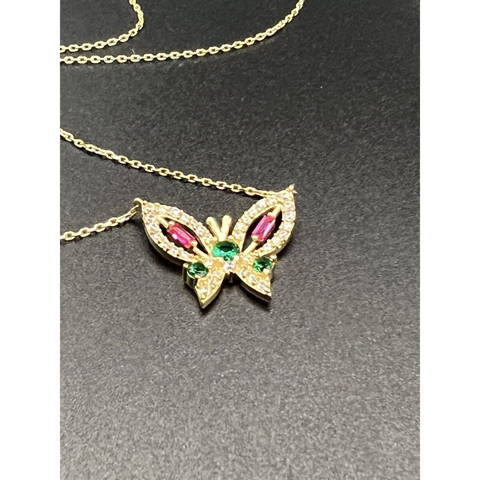 14k Gold Butterfly Multi Colored Gemstone 18in Necklace