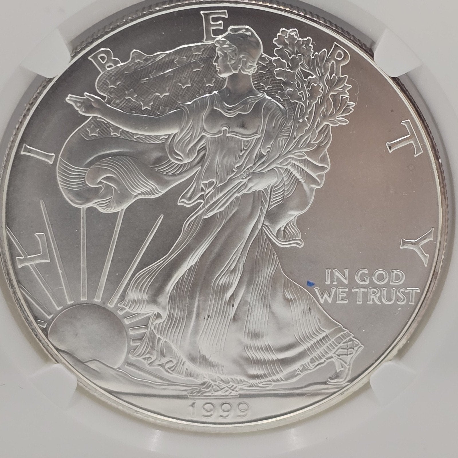 1999 American Silver Eagle, 1 Oz Fine .999 Silver USA Uncirculated $1 NGC MS69
