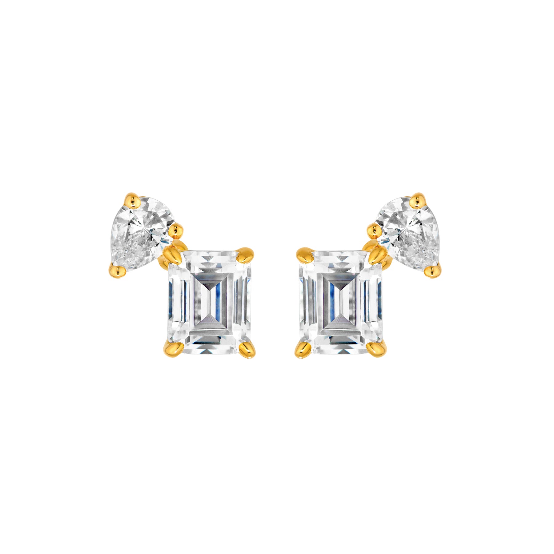 Brilliant and beautiful diamond studs to elevate your collection. Featuring a striking combination of emerald and pear-cut diamonds, set in 14K gold for timeless elegance.