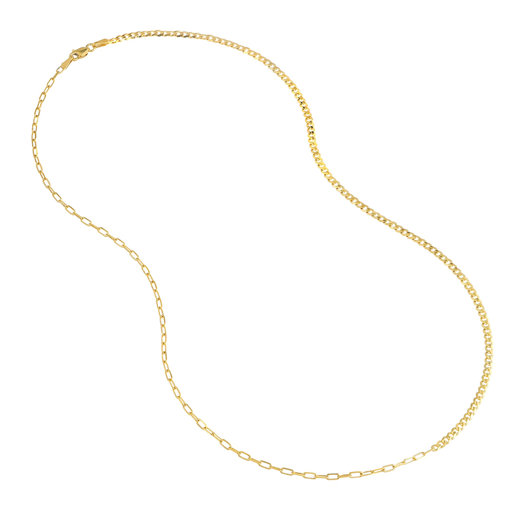 A two for one look? Where Paper Clip meets Curb chain, this one's a keeper. On a 1.95mm chain, it's made in 14K gold.
