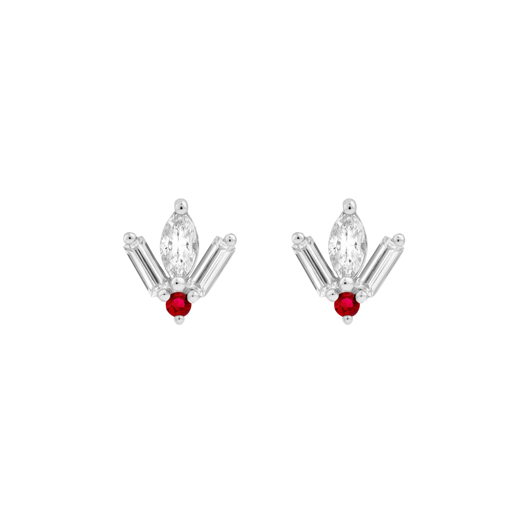 7/8tcw Multi-Cut Diamond & 1/20tcw Ruby Stud Earrings