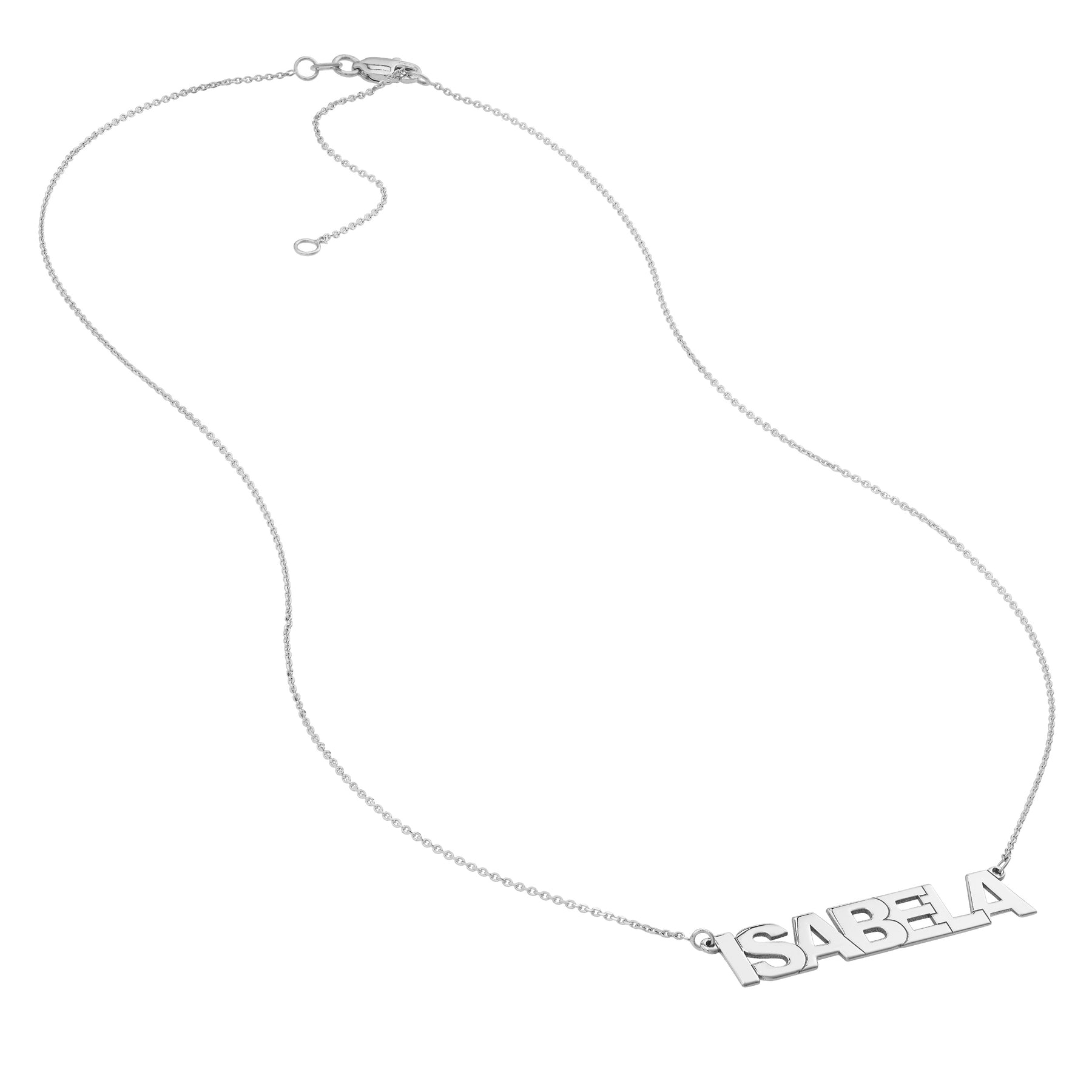 Design your dream necklace with these clean block letters. Choose your own message, which will measure 7mm high.