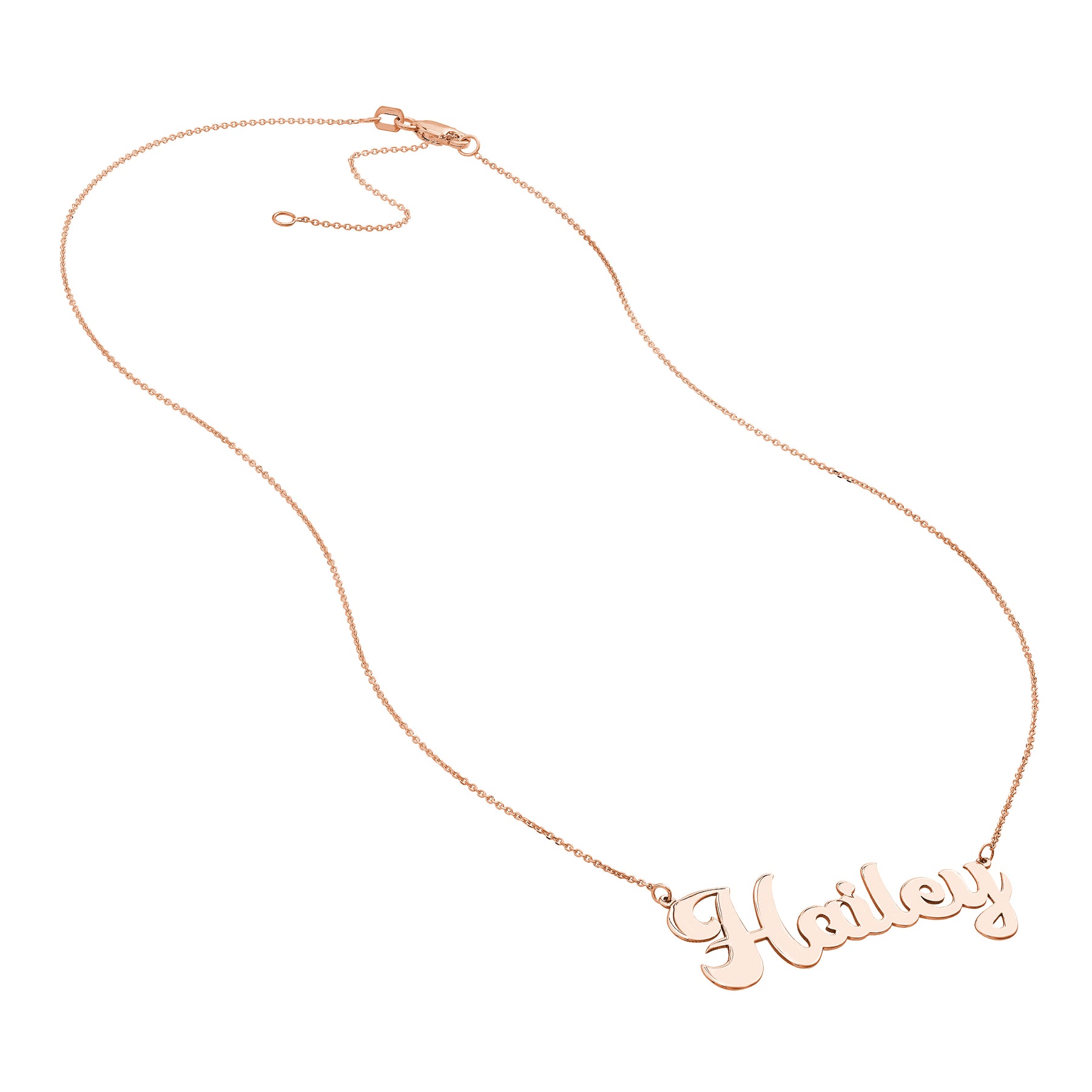 A classic font with an even classier chain. Choose your name or something that brings you pleasure and throw it on a necklace. It's made in 14K gold and can be adjusted from 16 to 18 inches.