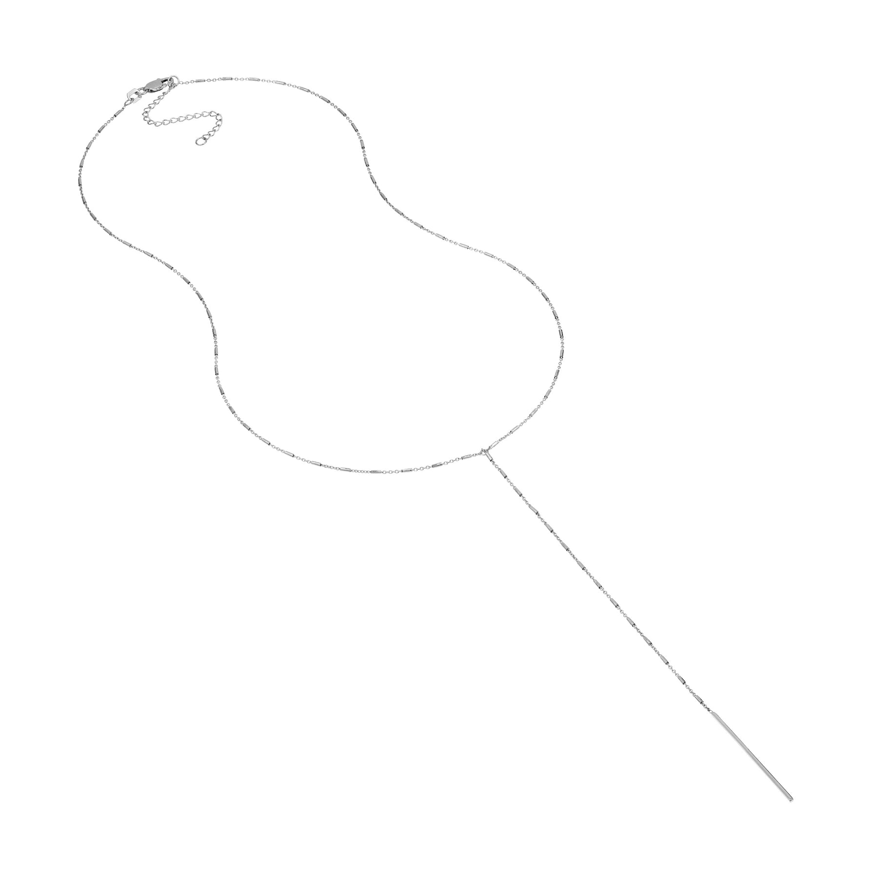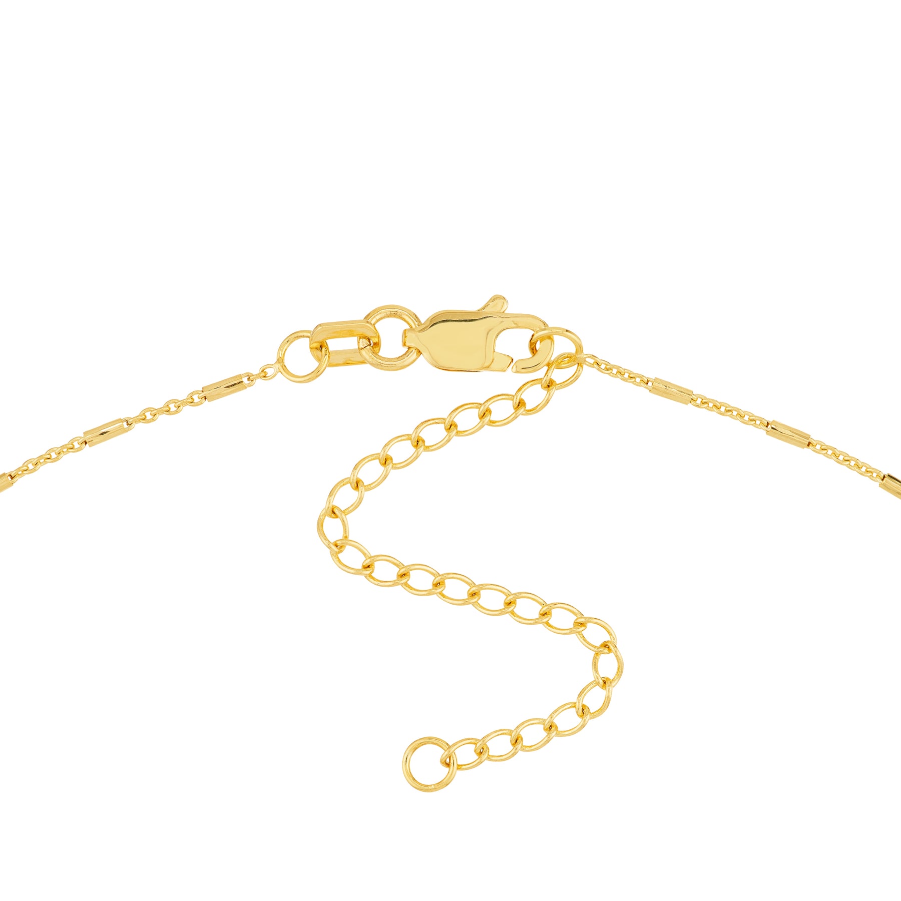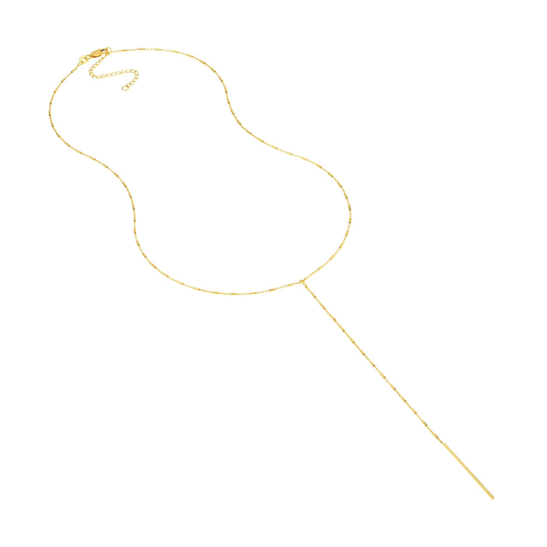 Looking for the perfect lariat necklace? This 14K gold bead and bar necklace pairs perfectly with any look.