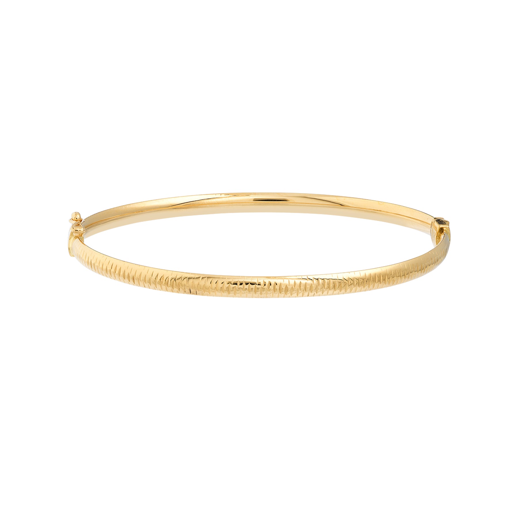 Customize your arm candy by picking and choosing your bangle stack. Add this diamond-cut tube hinged bangle in 14K gold to your jewelry box.