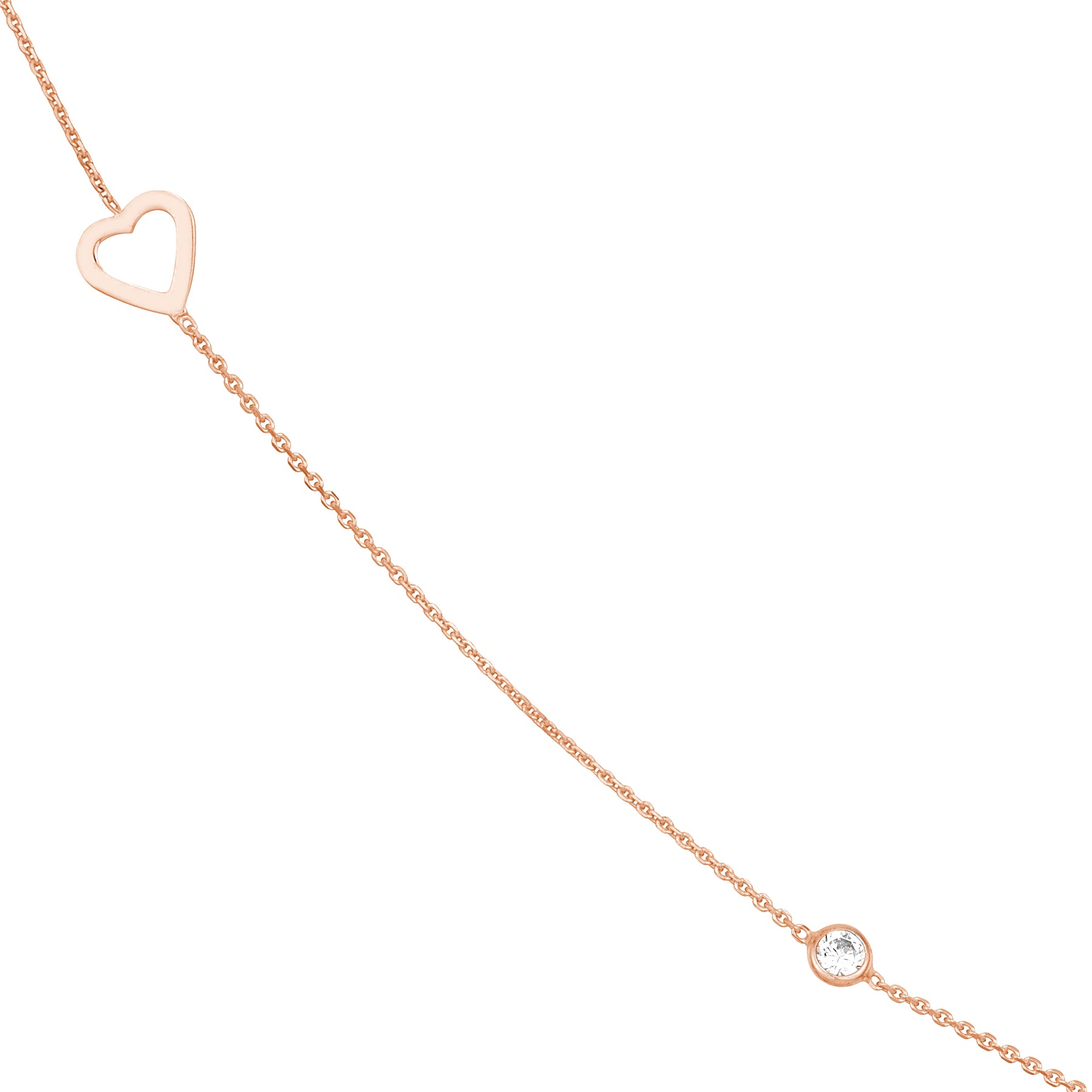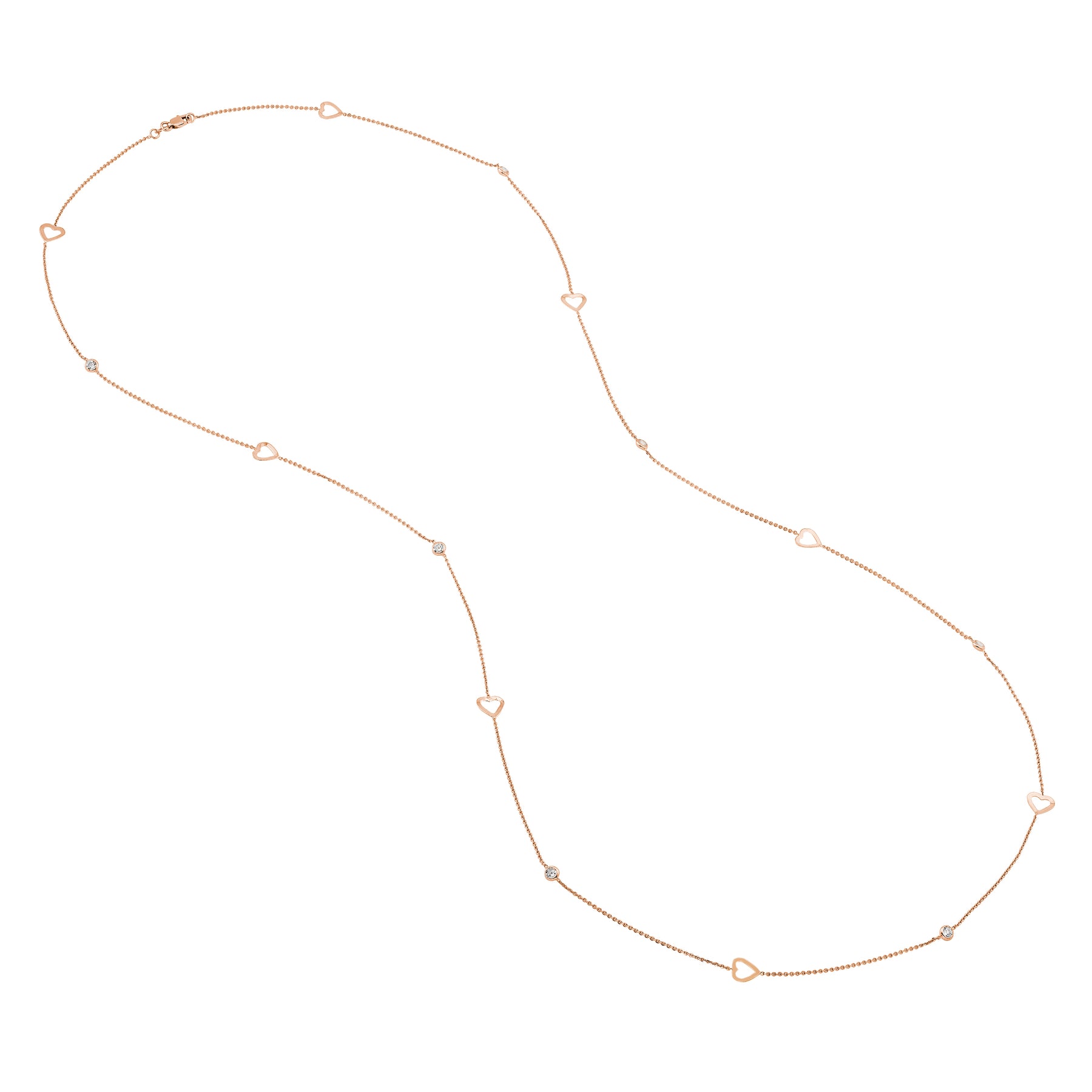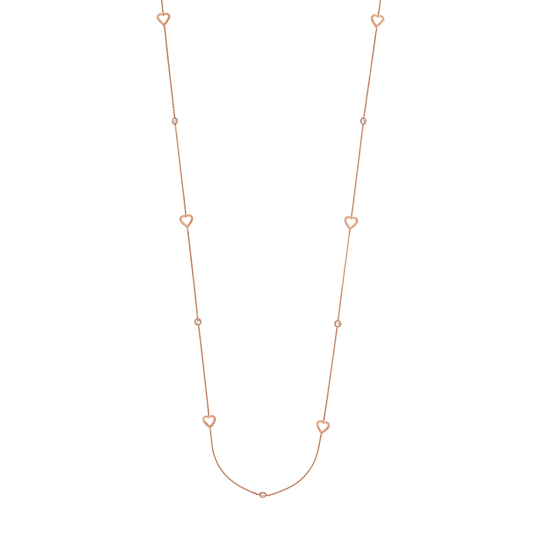 Sterling Silver CZ and Open Heart Station Long Necklace