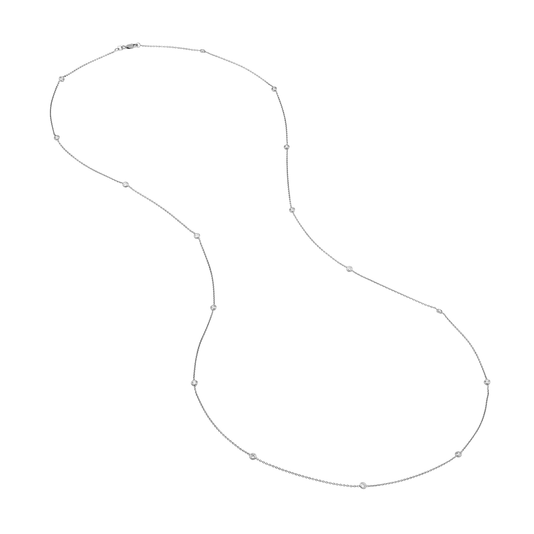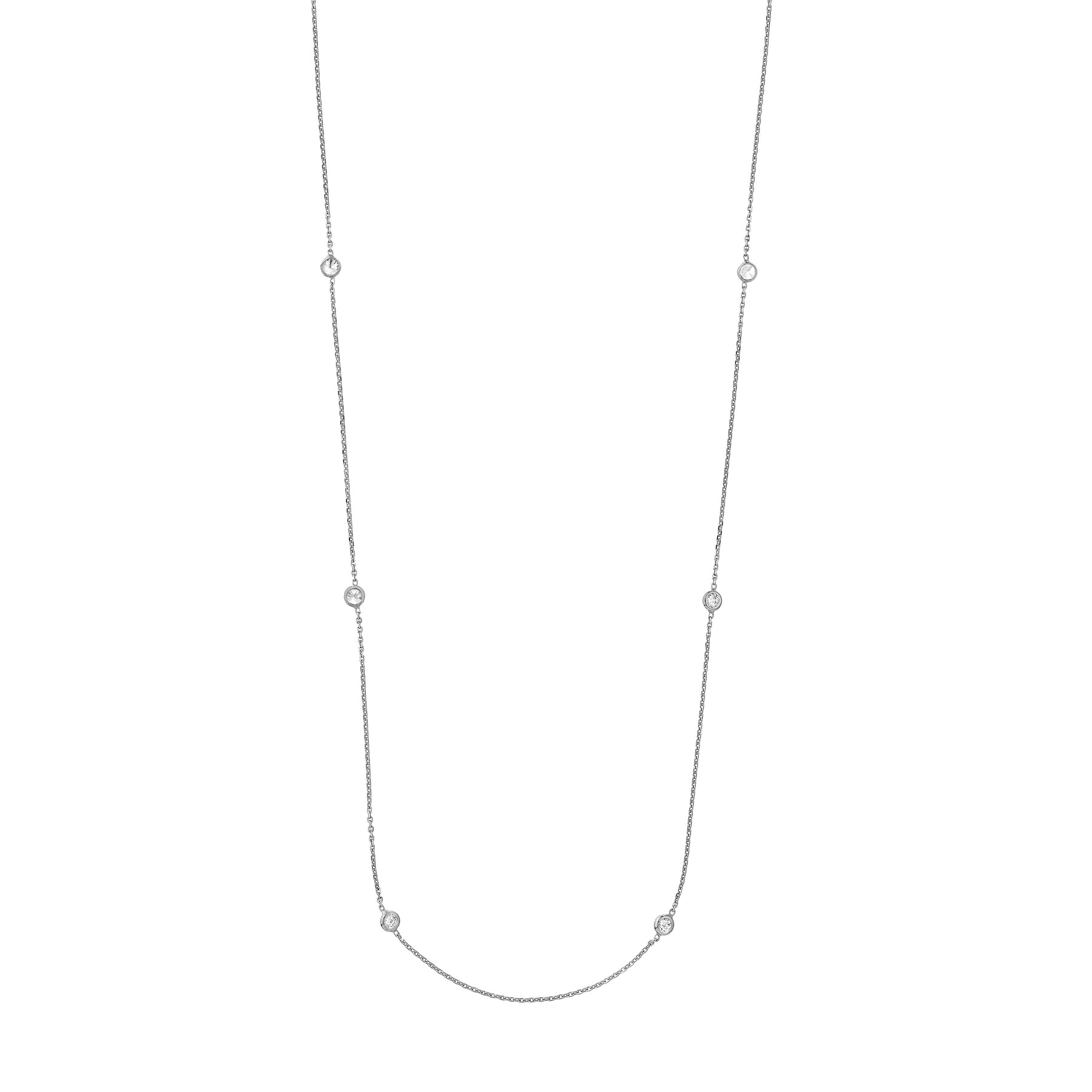 Sterling Silver CZ Bezel Station Long Necklace