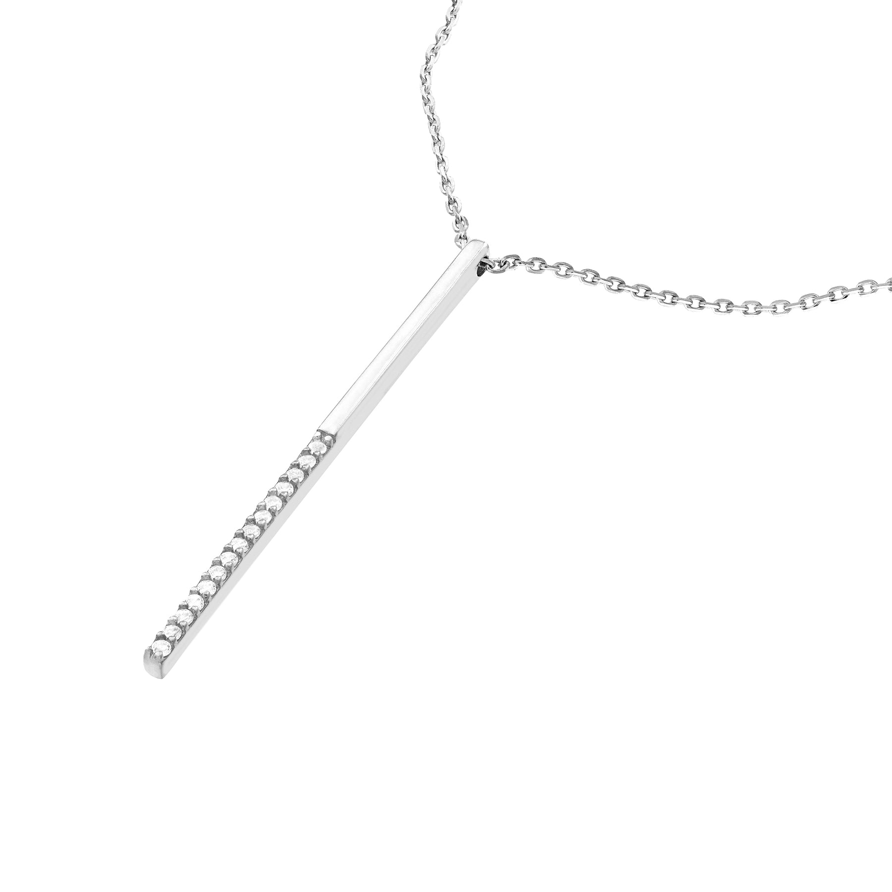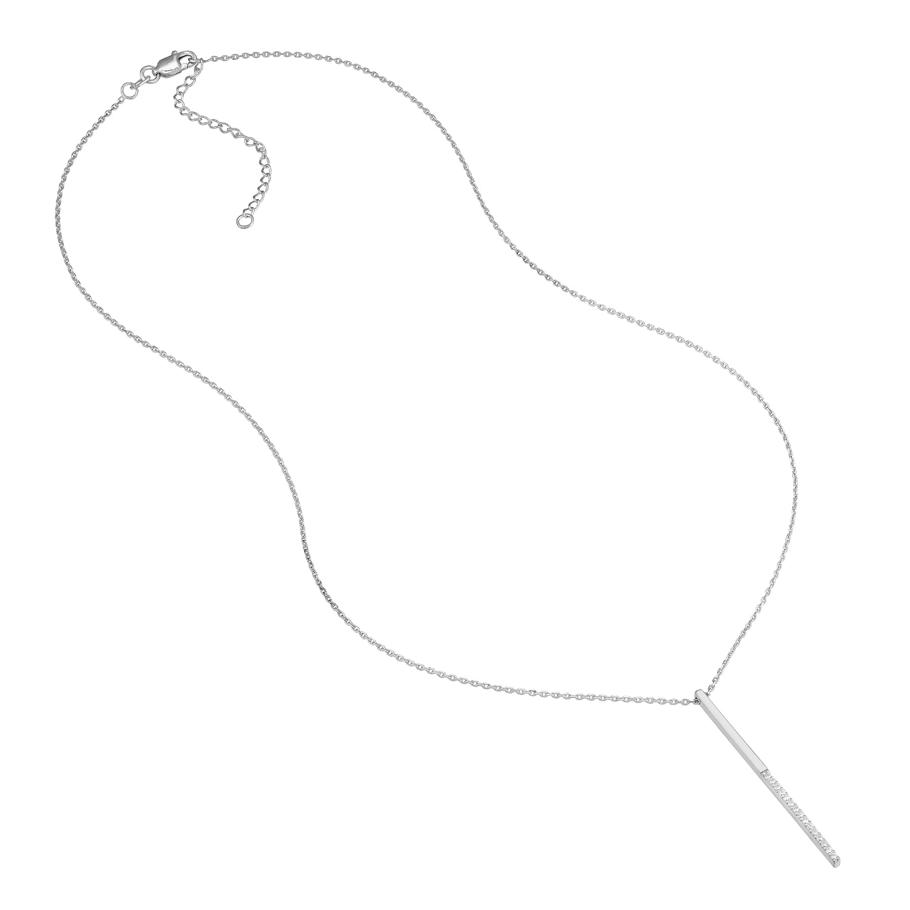 Sterling Silver Half-CZ Vertical Bar Adjustable Necklace